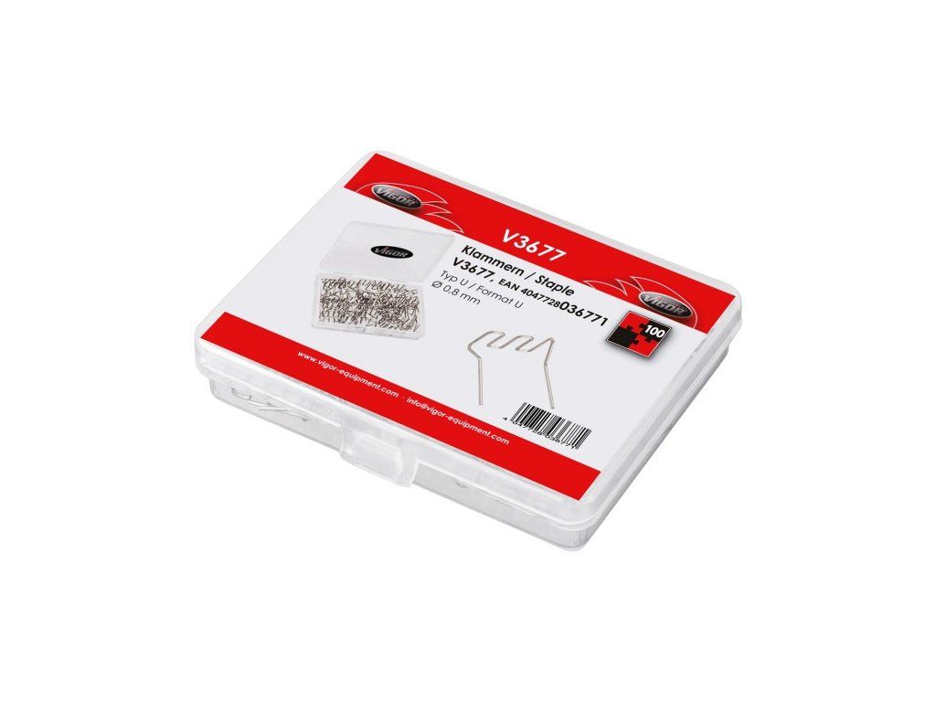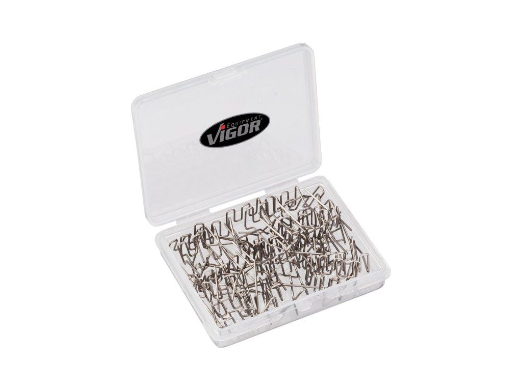 Sada 100 ks svorek typu U pro opravy a zesílení plastových dílů od německé kvalitní značky VIGOR.