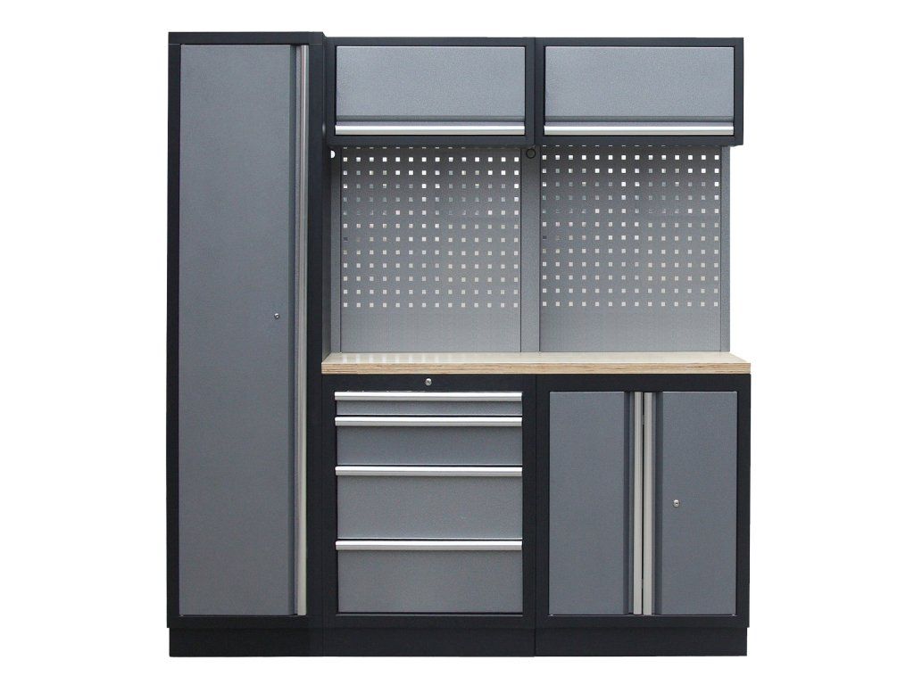 Sestava nábytku v sobě skrývá dostatečné množství úložného prostoru pro vaše nářadí, autotechniku i dílenské vybavení. V kombinaci s bytelnou pracovní deskou získáte multifunkční stěnu, se kterou vám půjde práce od ruky ve všech směrech.