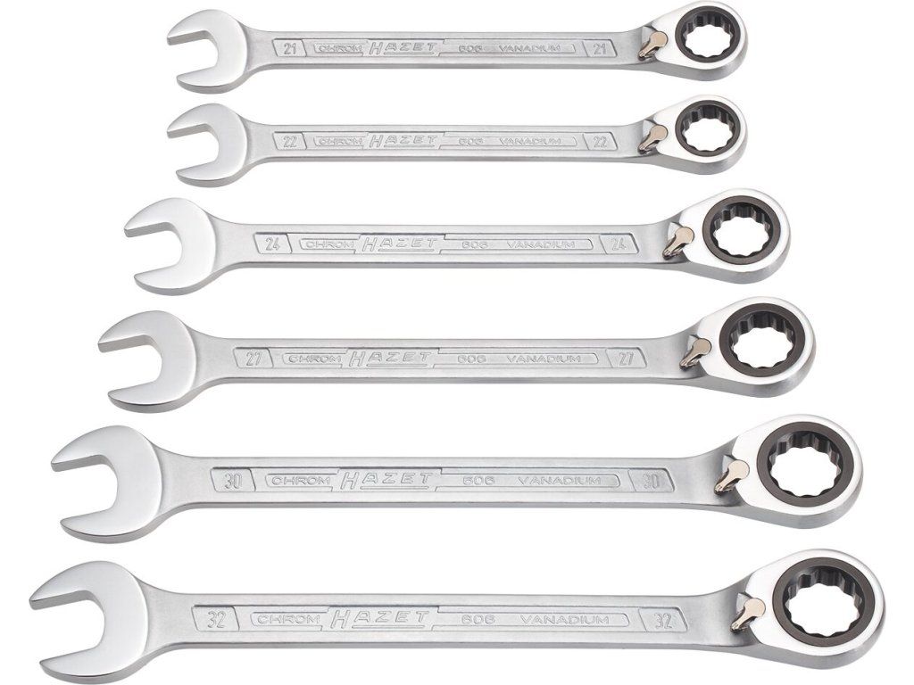 6-dílná sada ráčnových očkoplochých klíčů HAZET, chrom vanadium.