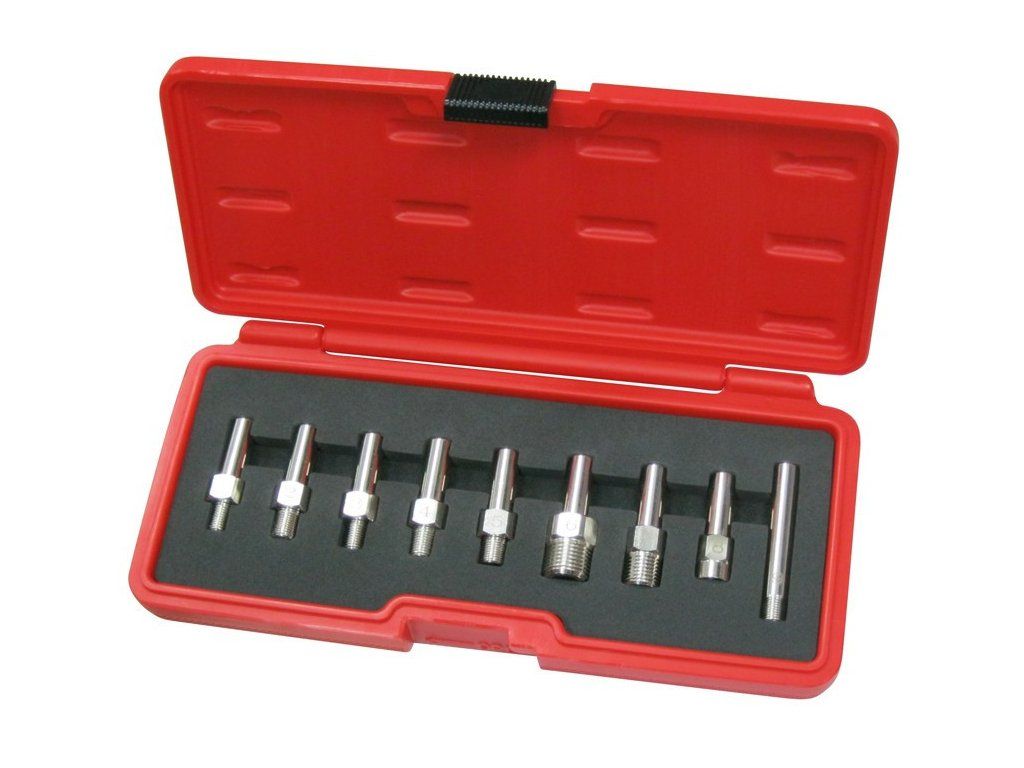 Adaptéry pro připojení plničky K-10A-7 k motoru, sada 9 kusů v praktickém plastovém kufru s pěnovou vložkou.