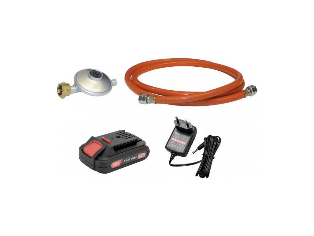 Příslušenství: nabíječka LG 18-05 I**, 1,5 m plynová hadice, redukční ventil, akumulátor 18 V 2 Ah.