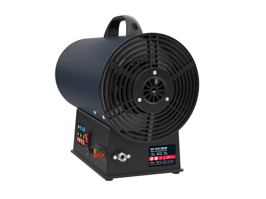Akumulátorová plynová turbína, určená k vyhřívání nebo vysoušení v nebytových objektech jako jsou sklady, haly, garáže, staveniště apod.