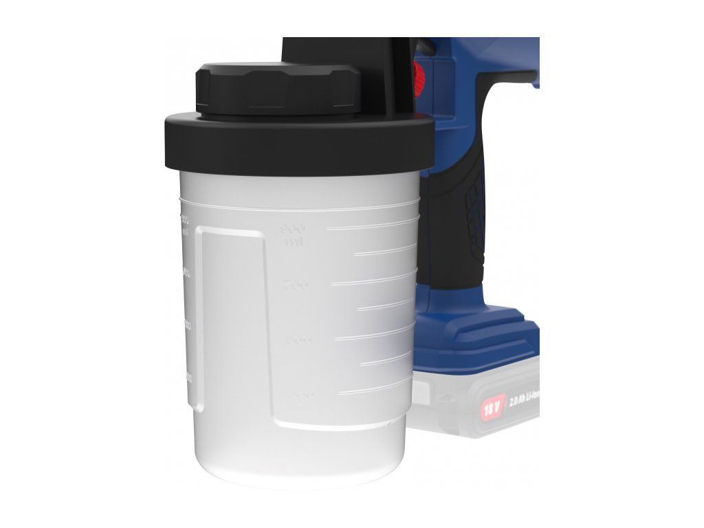 900 ml nádoba, trysky 2,0 - 2,5 mm, možnost nastavení šířky a tvaru nástřiku.