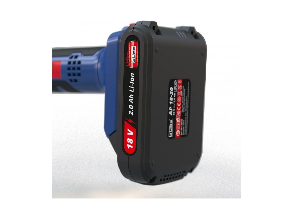 Li-Ion akumulátor 18 V s kapacitou 2 Ah bez paměťového efektu, s minimálním samovolným vybíjením a dlouhou životností.