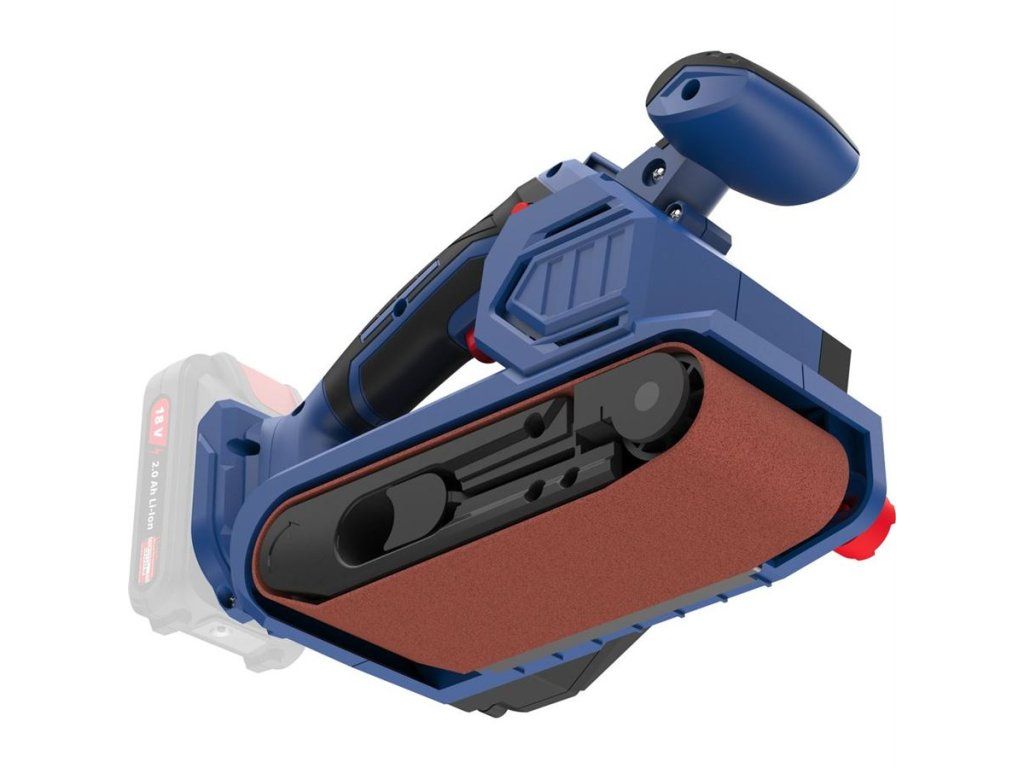 Vybavena systémem rychlé výměny pásu, plynulá regulace rychlosti pásu, přesné vedení pomocí druhé rukojeti, integrovaný systém odsávání prachu.