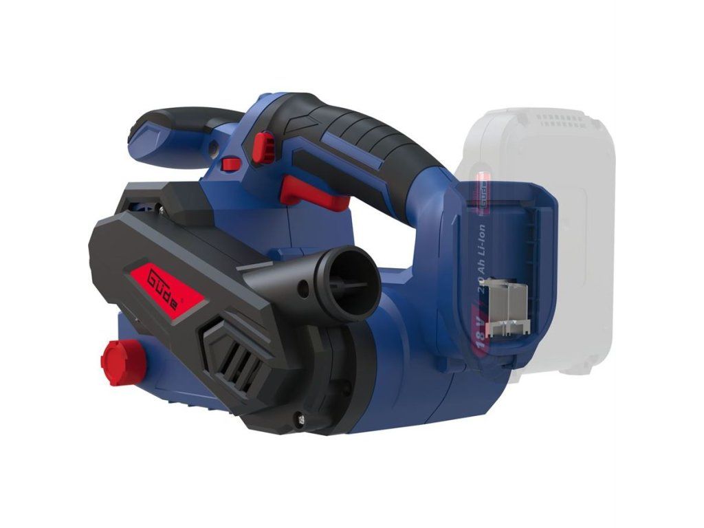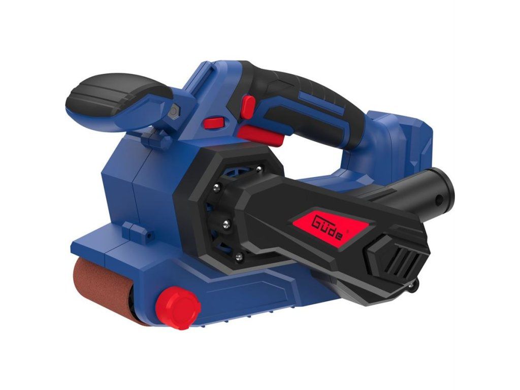 Ruční pásová bruska Güde BSR 18-0, 18 V, předvolba rychlosti brusného pásu, ergonomická rukojeť, integrované odsávání prachu. Rychlost pásu 2-5,8 m/s, brusná plocha 76x115 mm. Hmotnost 2,45 kg.