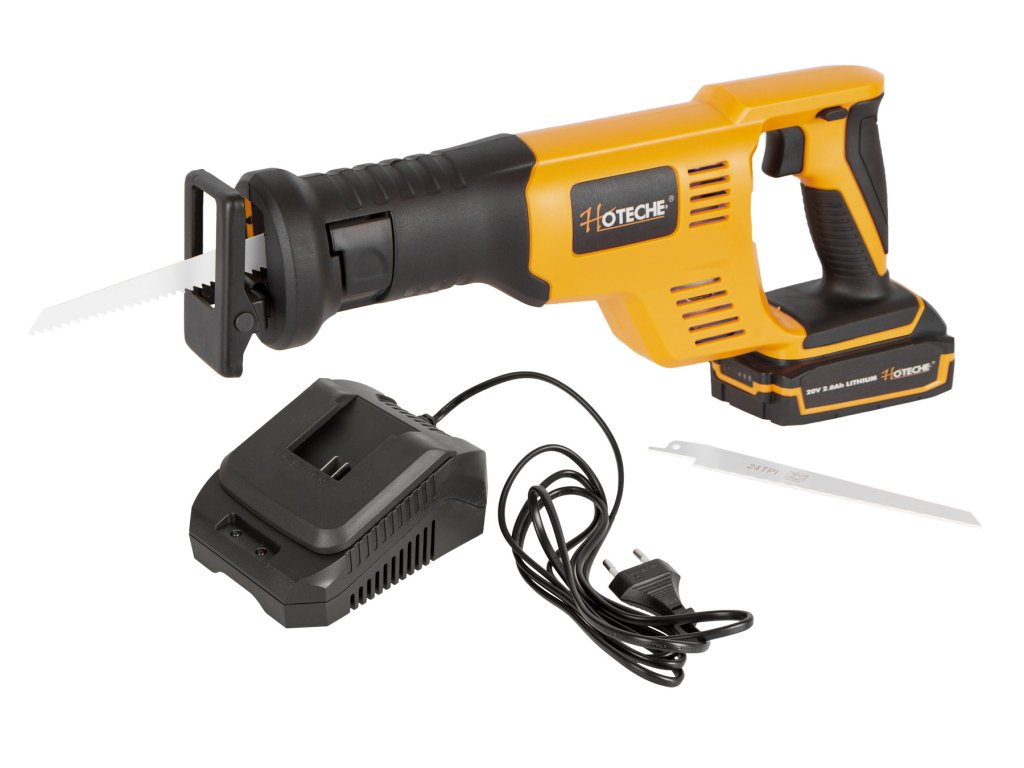 Pila je dodávána včetně 2 Ah akumulátoru a nabíječky. Stejné baterie pasují i do dalšího AKU nářadí od značky Hoteche.