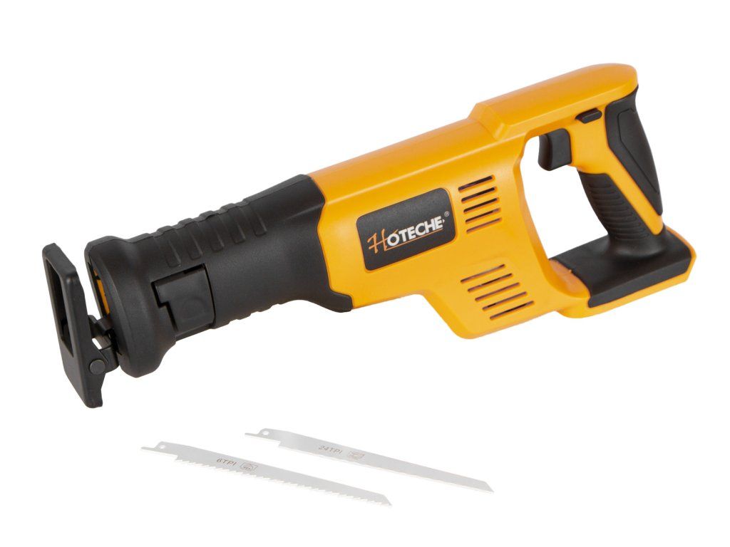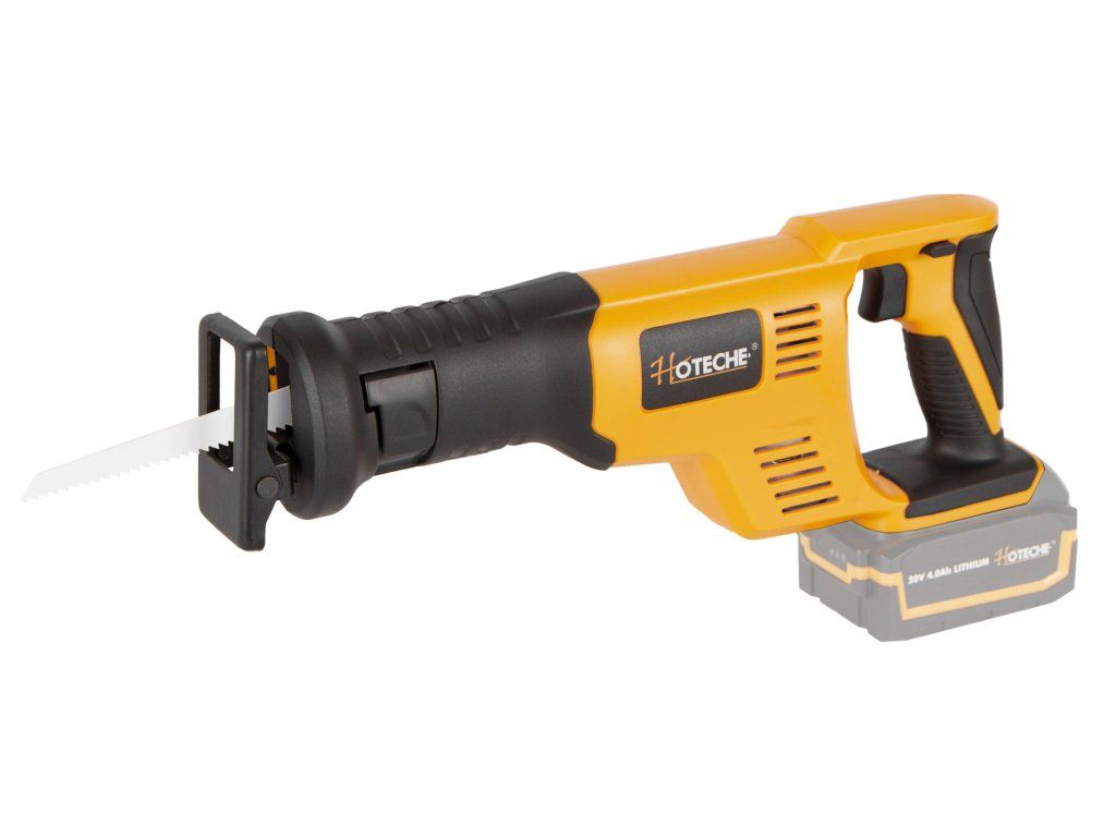 AKUmulátorová pila ocaska od značky Hoteche napájena akumulátorem 20 V.