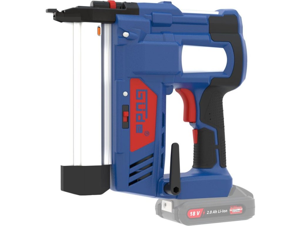 Robustní akumulátorová sponkovačka/hřebíkovačka, určená ke spojování nejrůznějších materiálů napevno nastřelovacími sponami nebo hřebíky.