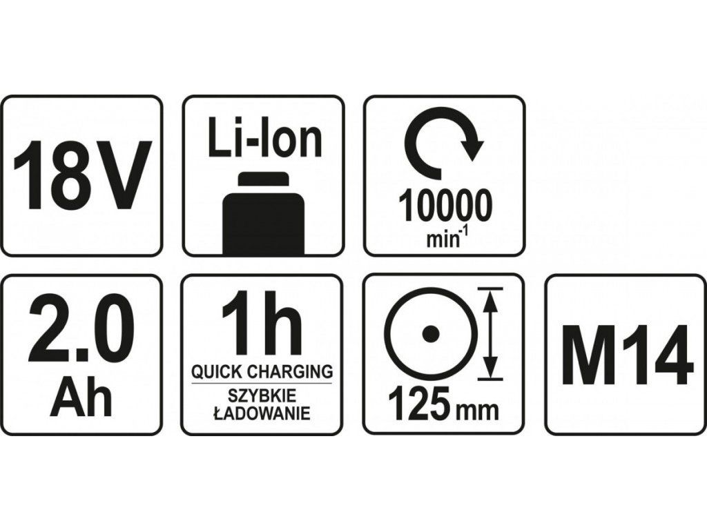Kompaktní AKU úhlová bruska značky Yato s výkonným motorem až s 10000 otáčkami za minutu.