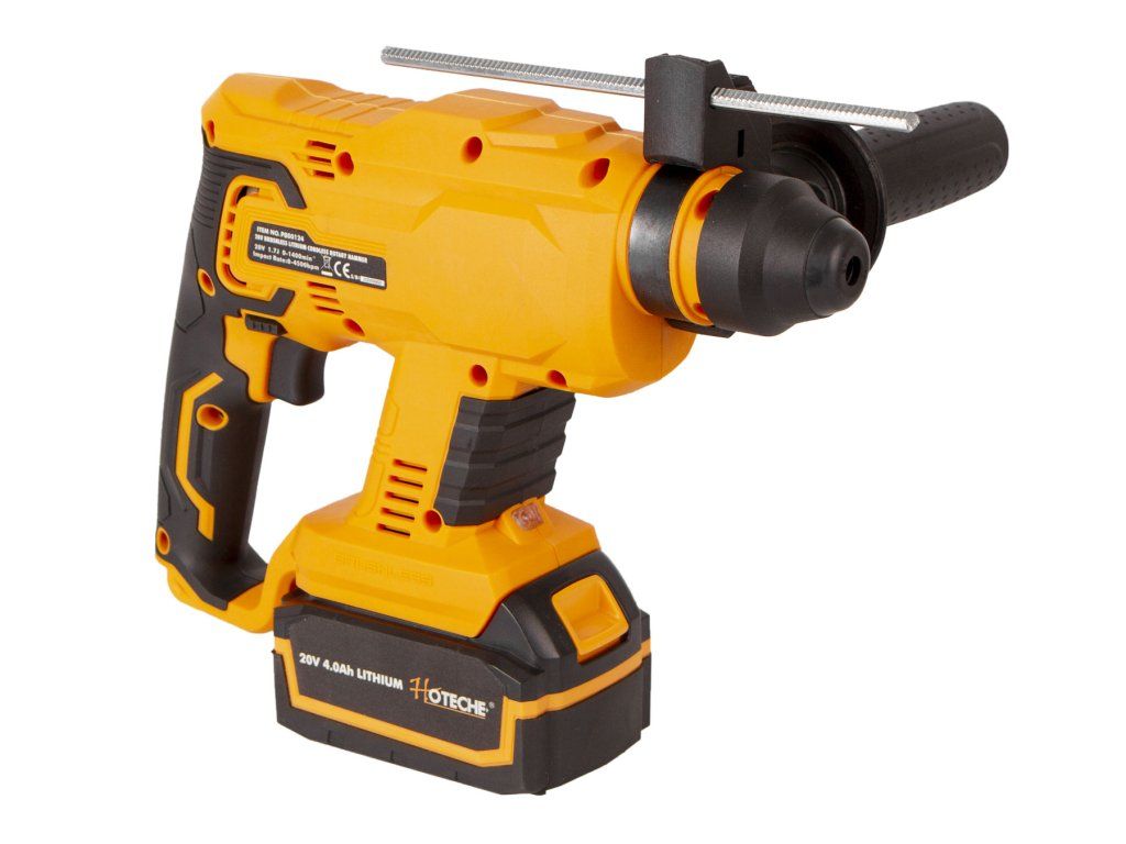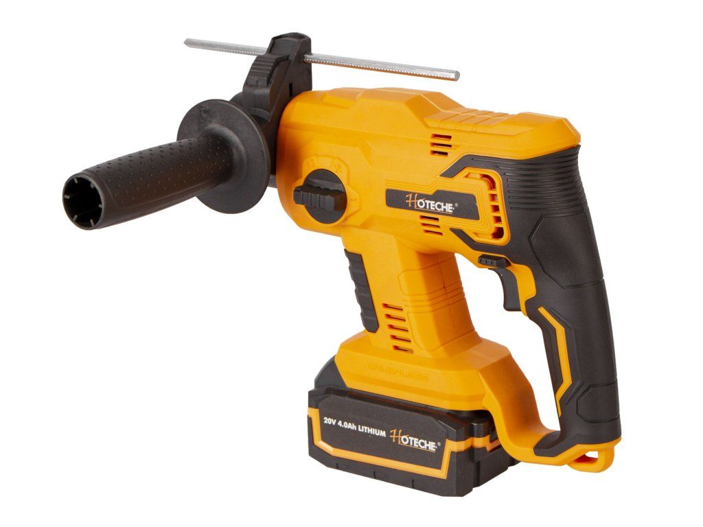 AKUmulátorové vrtací kladivo od značky Hoteche napájené akumulátorem 20 V 4 Ah.