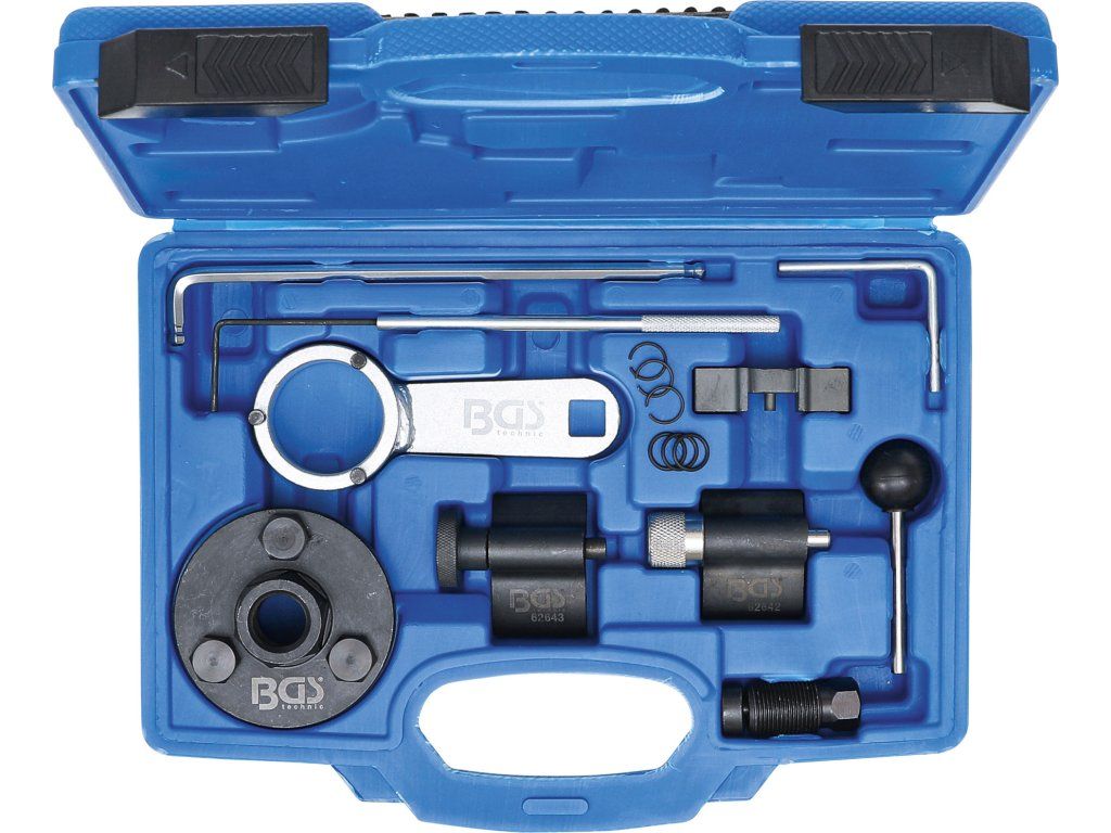 Sada obsahuje důležité nástroje pro kontrolu a nastavení dob řízení po výměně ozubeného řemene.
