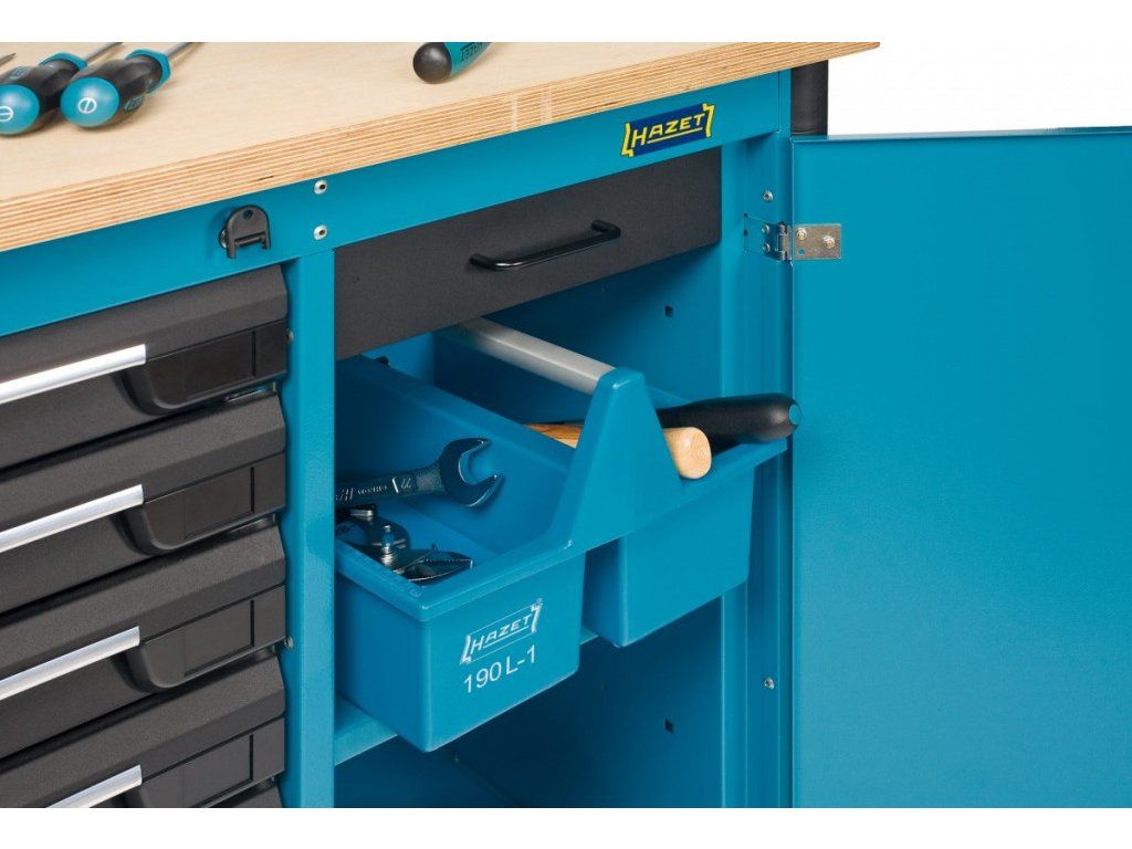 Praktický stohovatelný box německého výrobce HAZET, měřítko na vrchu, hliníková rukojeť. Možno vkládat do dílenských vozíků.