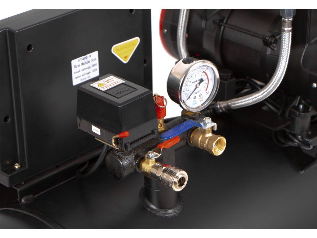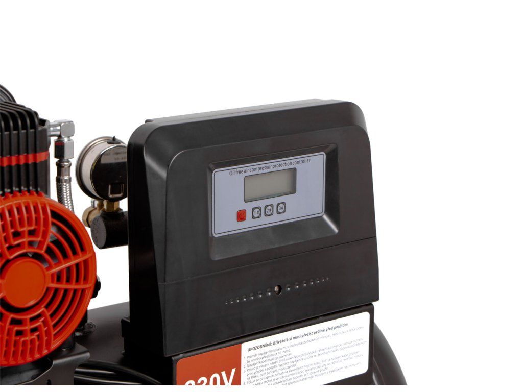Jednotlivé motory kompresoru jsou spouštěny postupně, proto reálný příkon nepřesáhne 3000 W. Kompresor lze používat na klasickém 16 A jističi.