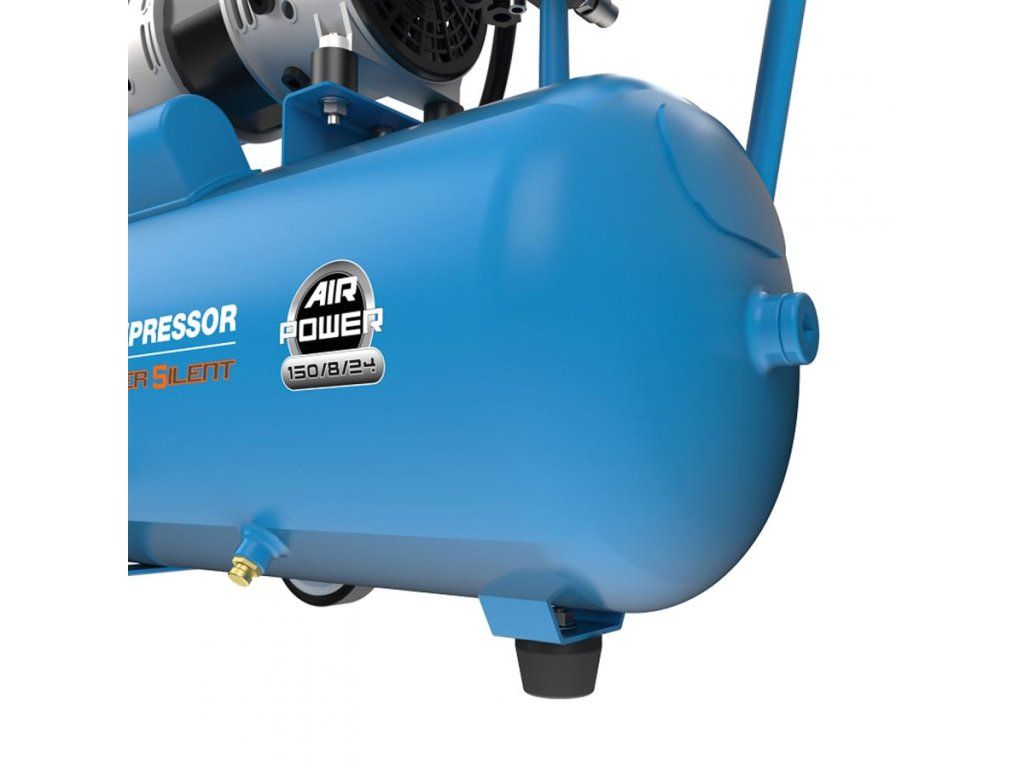 Tlaková nádoba: 24 l, silentbloky (4), ventil pro vypouštění kondenzátu, přední podpěra s gumovou patkou, pojezdová kola (transportní rukojeť) pro pohodlné přejíždění.