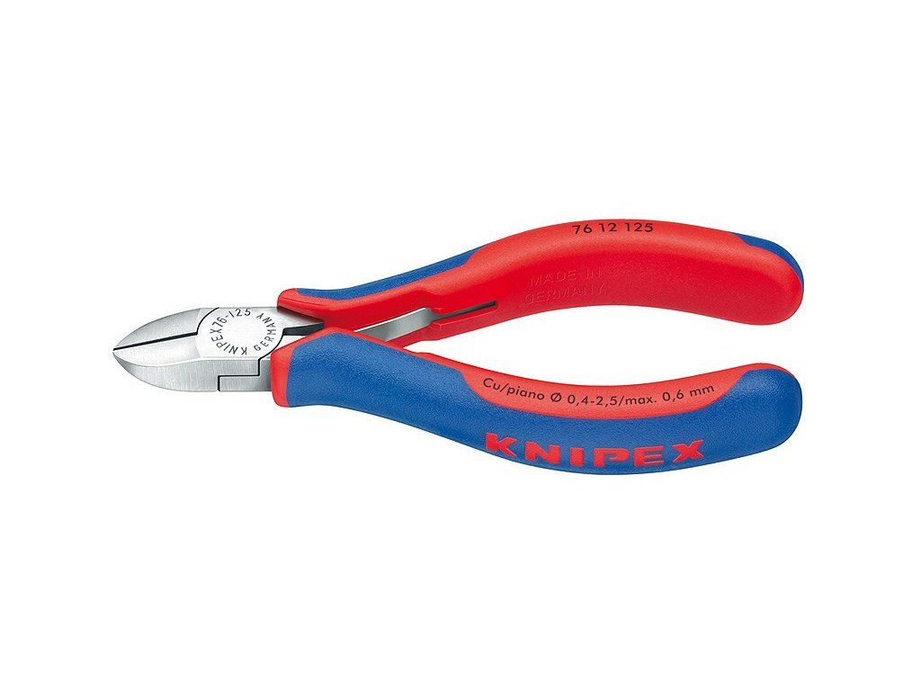 S ostrými, přesně doléhajícími břity na měkké a tvrdé dráty a pružinový drát. Břity doplňkově induktivně tvrzené, tvrdost břitů asi 63 HRC. Průchozí čep kloubu. Vanadová elektroocel- kovaná, kalená v oleji.