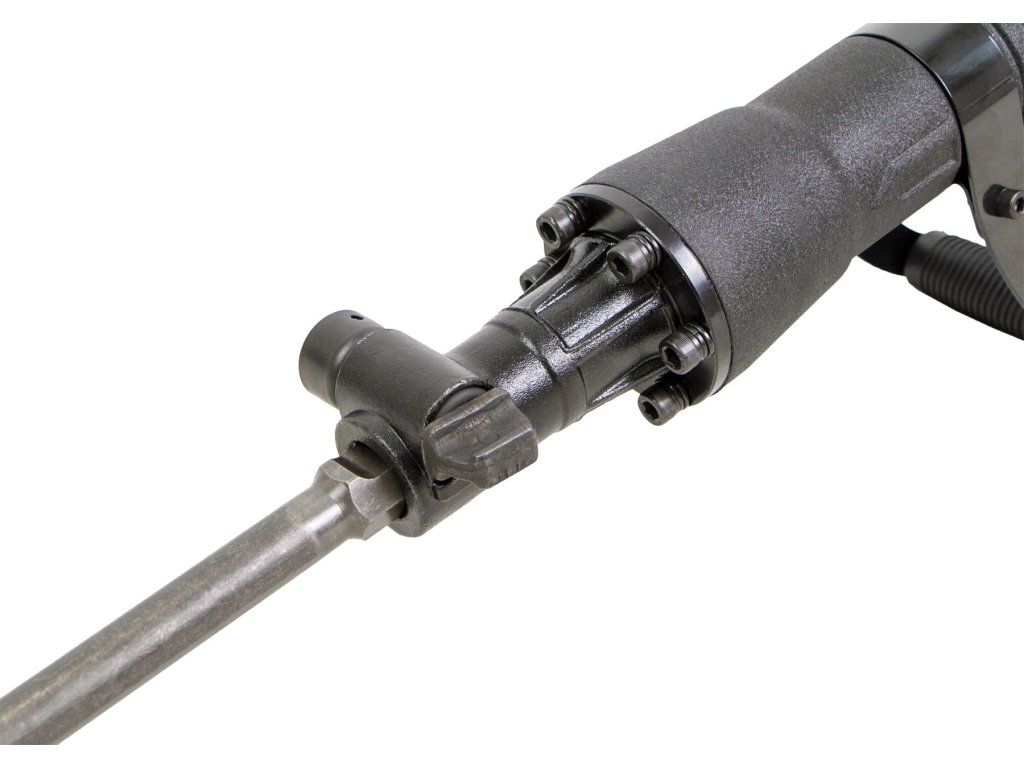 Kladivo je z celokovové konstrukce, která zajišťuje dostatečnou pevnost a odolnost. Madla mají měkčenou a protiskluzovou povrchovou úpravu a pro snížení únavy rukou je stroj vybaven zapínacím spínačem s aretací bez nutnosti tlačítko stále držet.