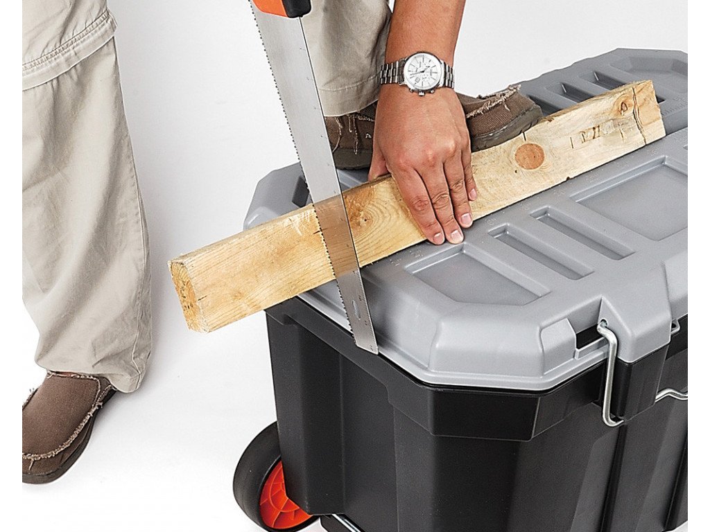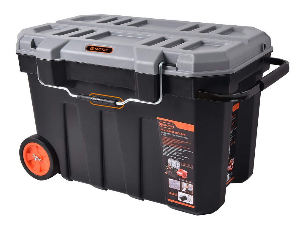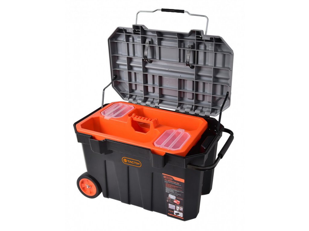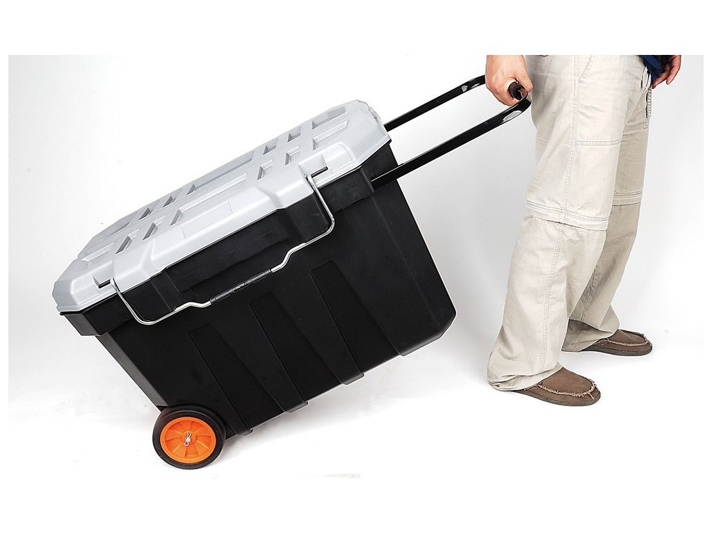 Plastový box vhodný pro uskladnění nářadí a pro jeho snadný přesun. Pro přesun je box vybavený teleskopickou rukojetí z užší strany. rukojeť lze vytáhnout až o 50 cm.