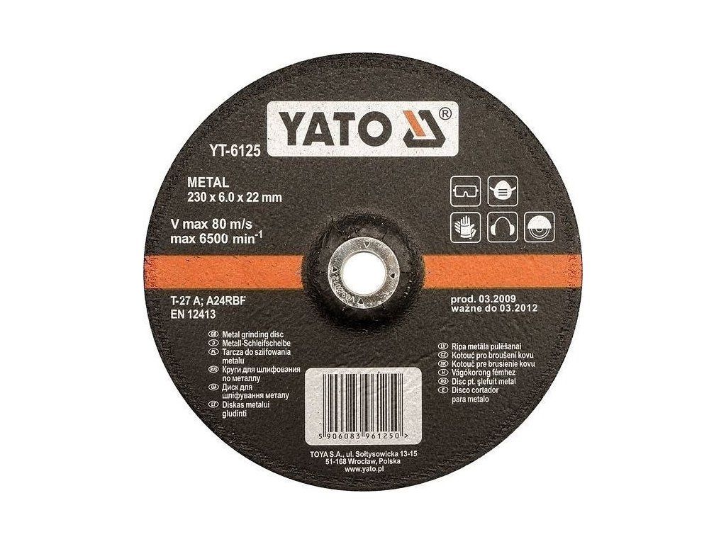 pro úhlovou brusku, vypouklý, hrubá zrnitost, korund, ø 125 mm, ø otvoru 22 mm, 80 m/s, max otáčky 13 200/min, Yato