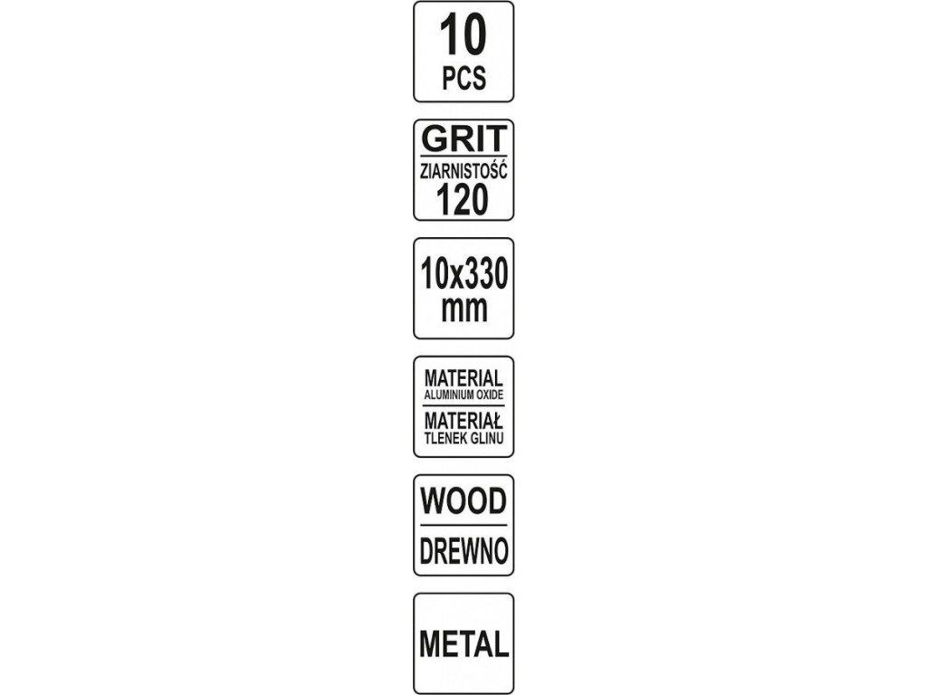 Nekonečný brusný pás určený pro pásové brusky Brusný prostředek z oxidu hlinitého Velikost pásu 10 x 330mm Vhodný na dřevo a kov Balení obsahuje 10ks Rozměr (mm): 10 x 330 Zrnitost: P120Doplňkové parametry