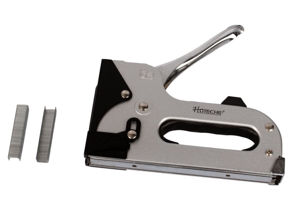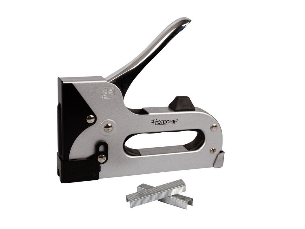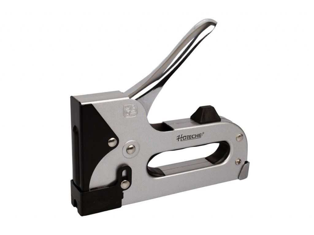 Kvalitní sponkovačka značky Hoteche je vyrobená z chrom vanadiové oceli. Pevná a bytelná konstrukce sponkovačky zajišťuje její dlouhou životnost a odolnost při každodenním používání. Vnitřní úchop je osazený gumovou vložkou, která je protiskluzová, pro pohodlnější uchopení. Sponkovačka je také vybavena dorazem proti úplnému stlačení.