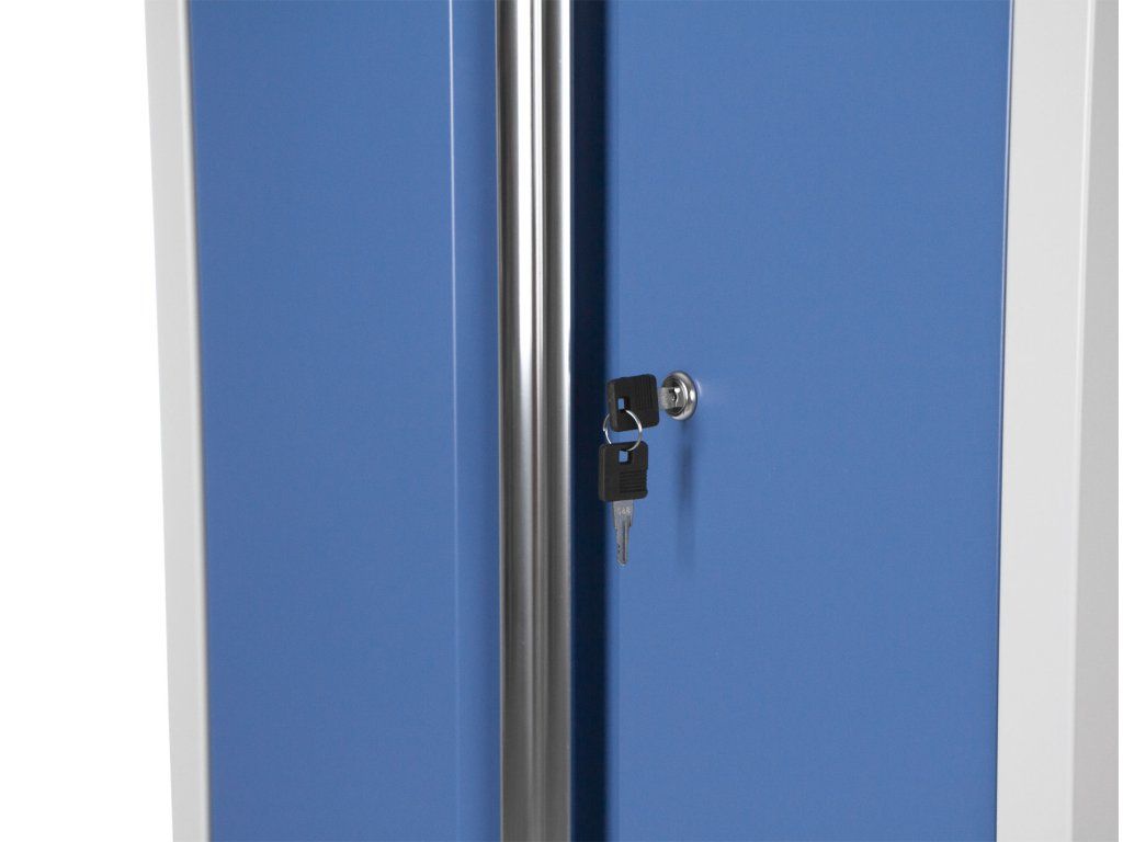 Celokovová PROFI dílenská dvoukřídlá skříňka se prodává i v rámci kvalitní PROFI 10ks sestavy dílenského nábytku TGS1300 nebo menších sestavách. Skříňka je vhodná do profesionálních servisů, dílen, ale také do garáží pro uskladnění širokého sortimentu zboží i ručního nářadí, na které se pak nepráší a snáze se udrží přehledně uklizené na správném místě.
