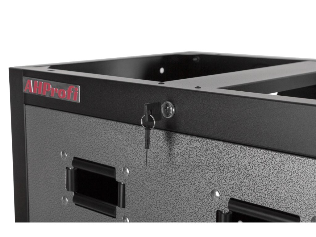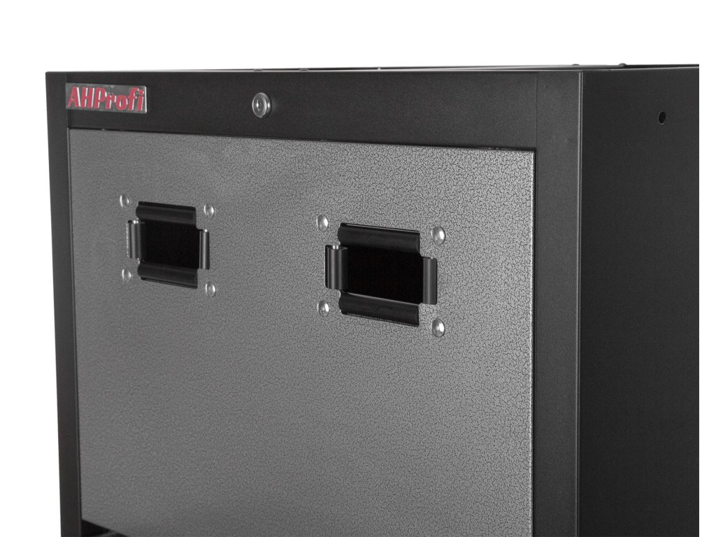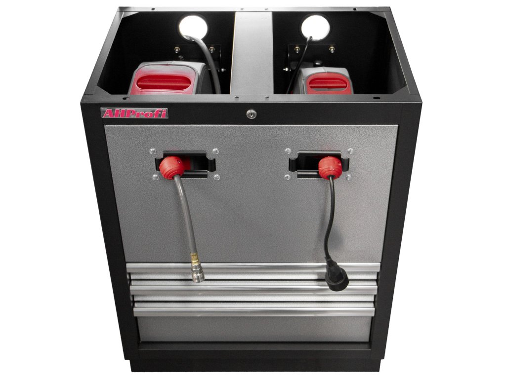 Celokovová PROFI dílenská dvoukřídlá skříňka s otvory pro uskladnění samonavíjecích bubnů na vzduch (XBA02) nebo elektřinu (12 m, 20 m).
