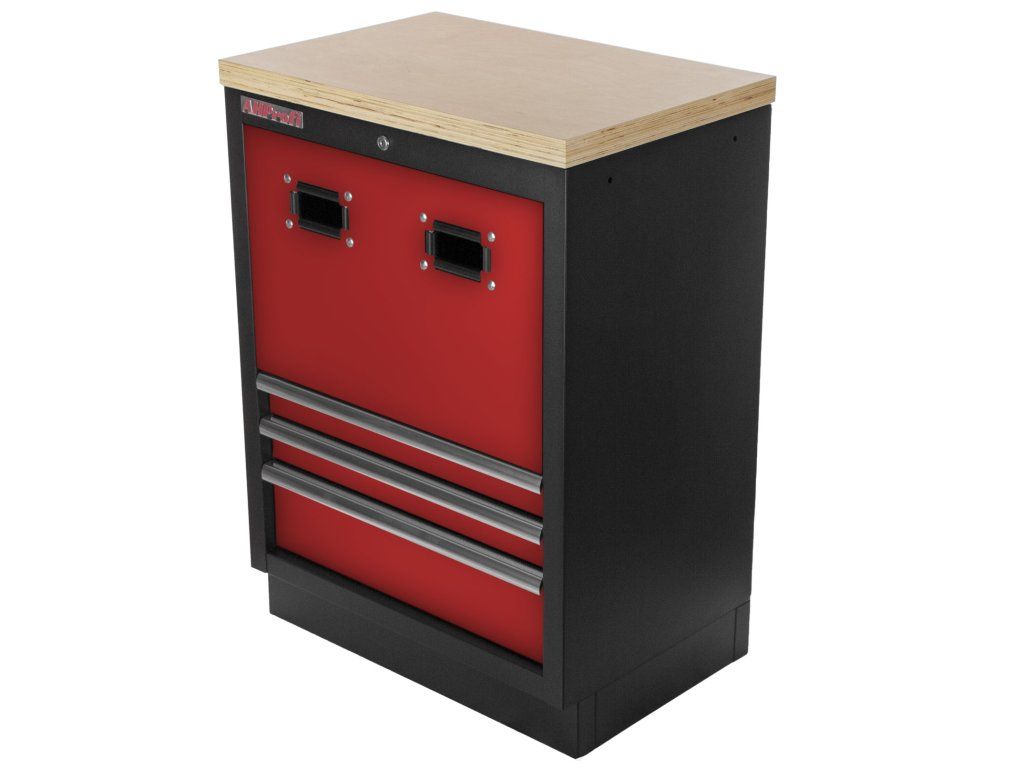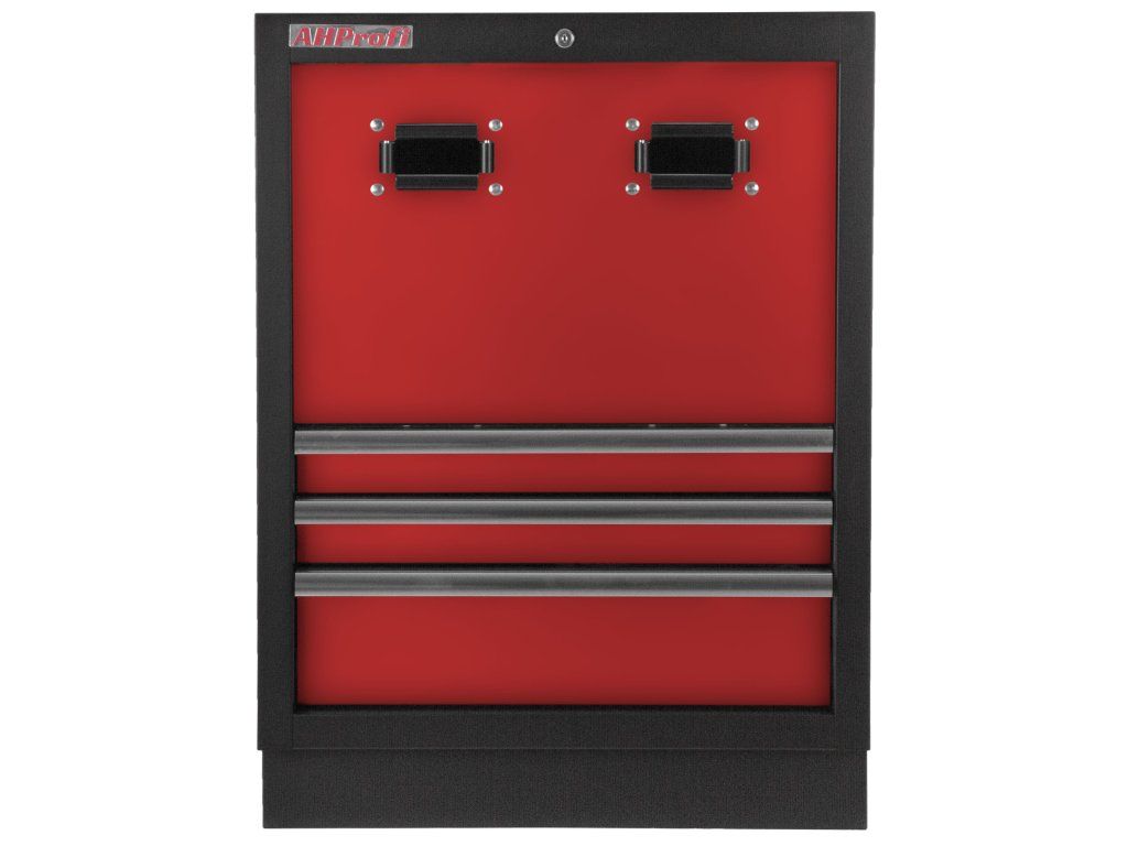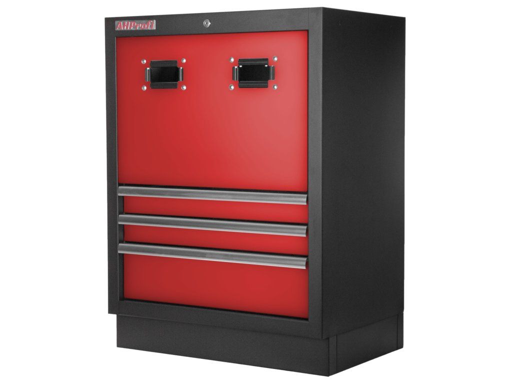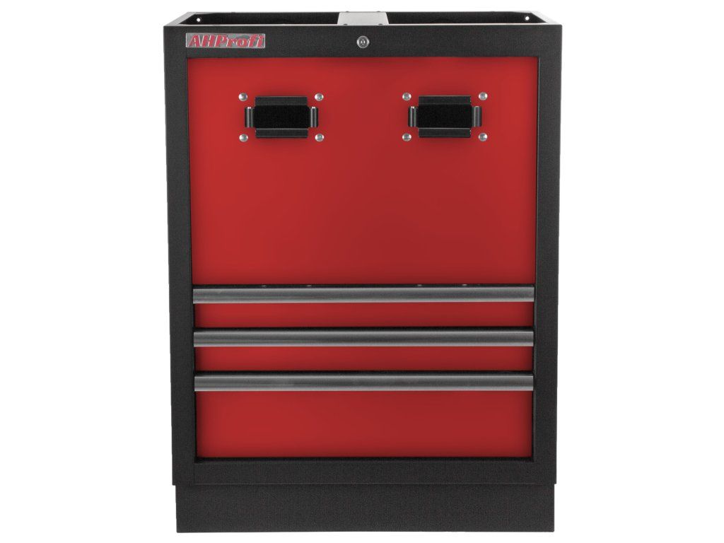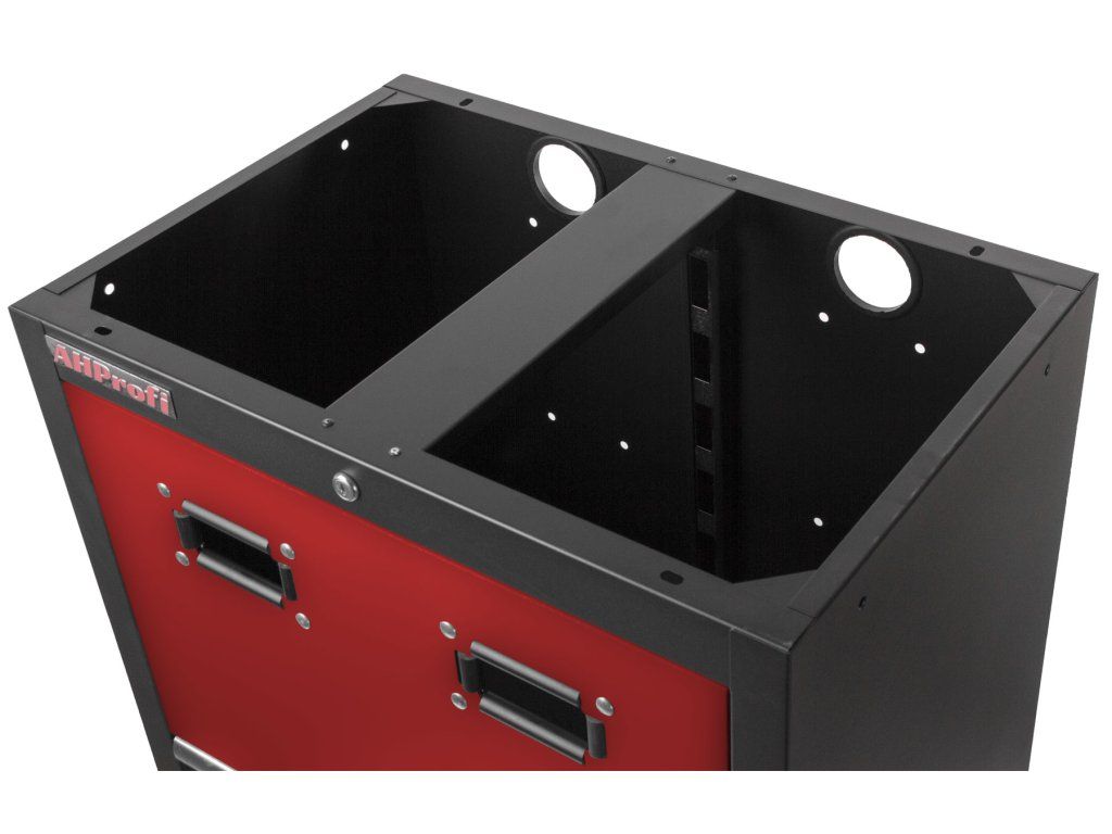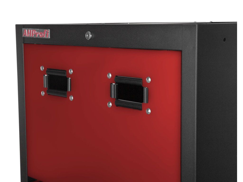 Celokovová PROFI RED dílenská dvoukřídlá skříňka s otvory pro uskladnění samonavíjecích bubnů na vzduch (XBA02) nebo elektřinu (12 m, 20 m).