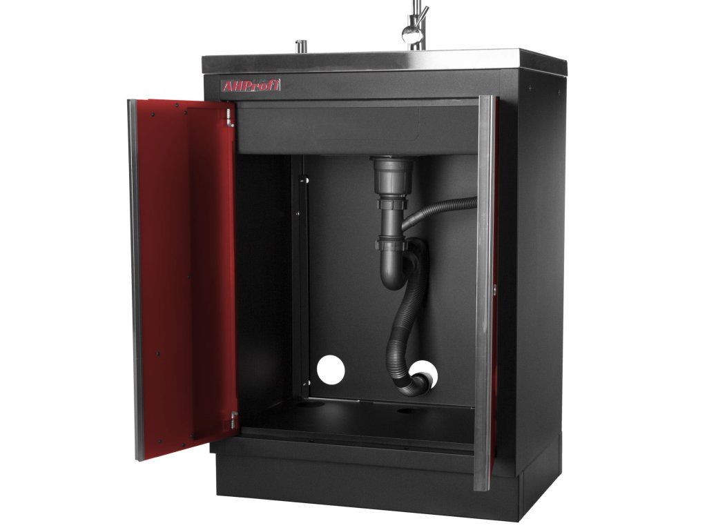 Skříňka je vhodná do profesionálních servisů, dílen nebo garáží pro mytí rukou nebo drobných předmětů.