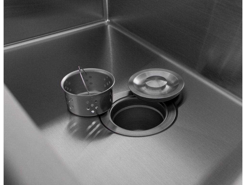 Samotný dřez je dále vybaven uzavíratelnou výpustí pod kterou se nachází odnímatelné sítko.