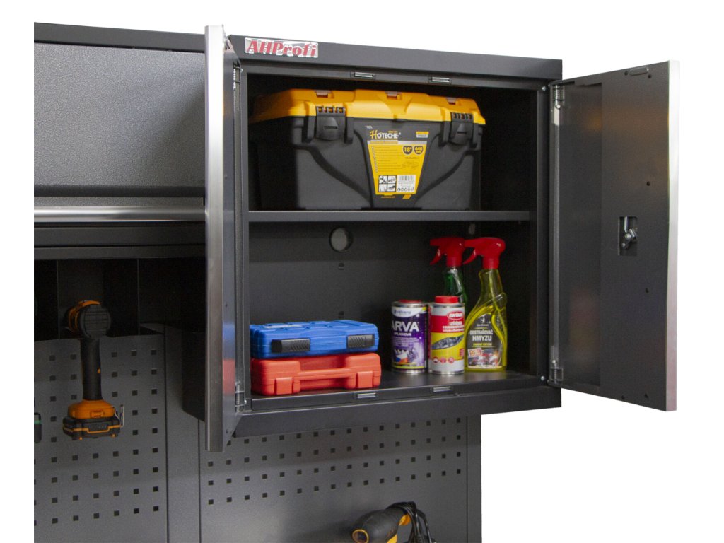 Celokovová dvoukřídlá závěsná skříňka se prodává i v rámci kvalitního PROFI dílenského nábytku. Skříňka je vhodná do profesionálních servisů, dílen, ale také do garáží pro uskladnění širokého sortimentu zboží i ručního nářadí, na které se pak nepráší a snáze se udrží přehledně uklizené na správném místě. Skříňka je uzamykatelná.