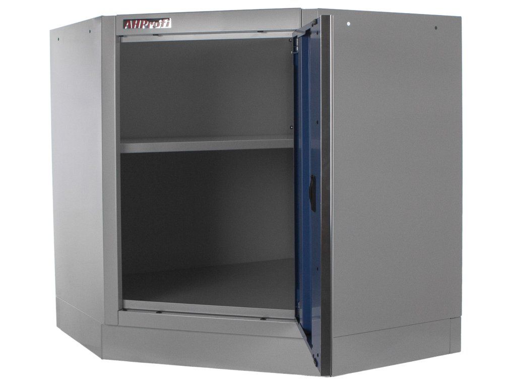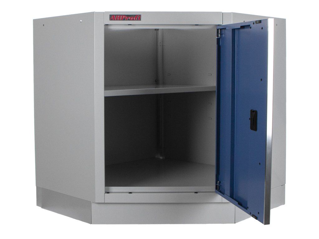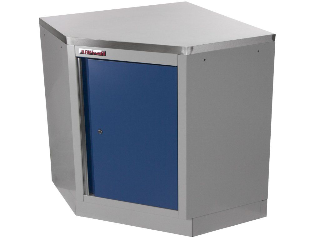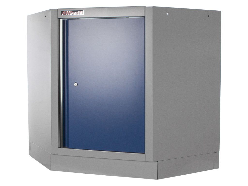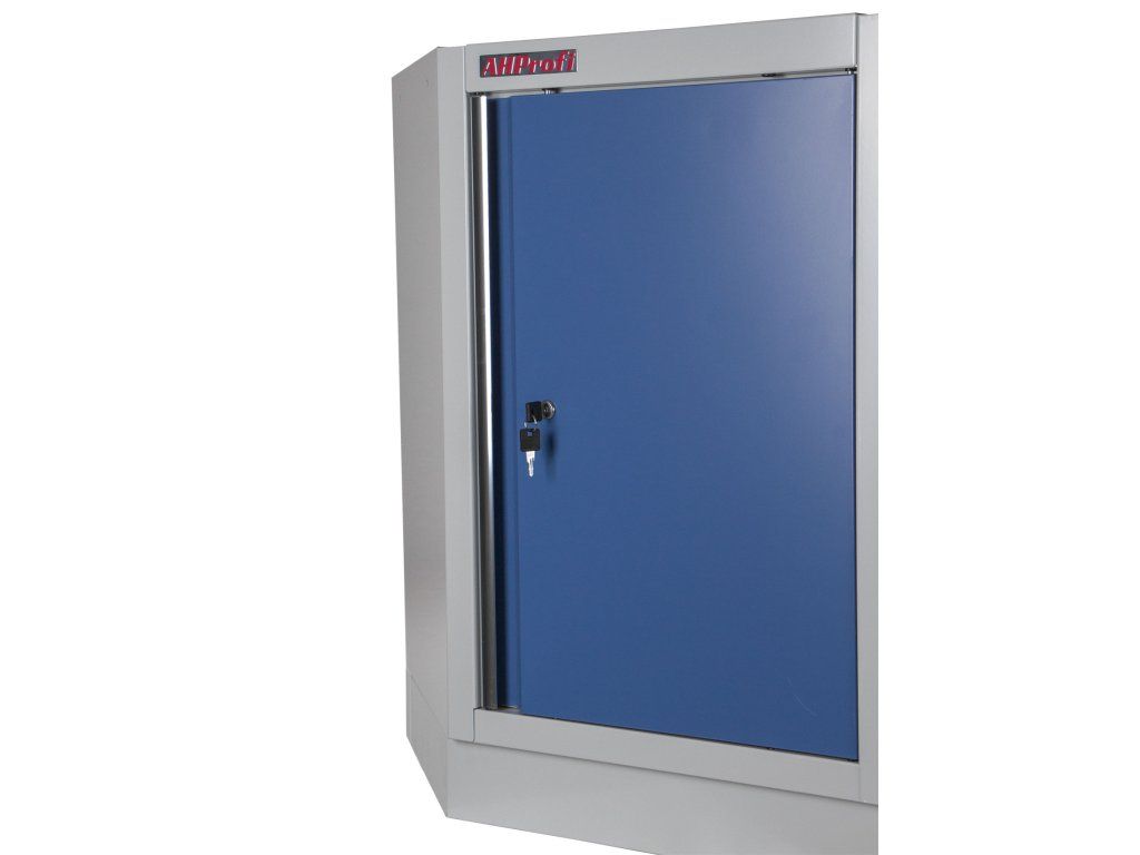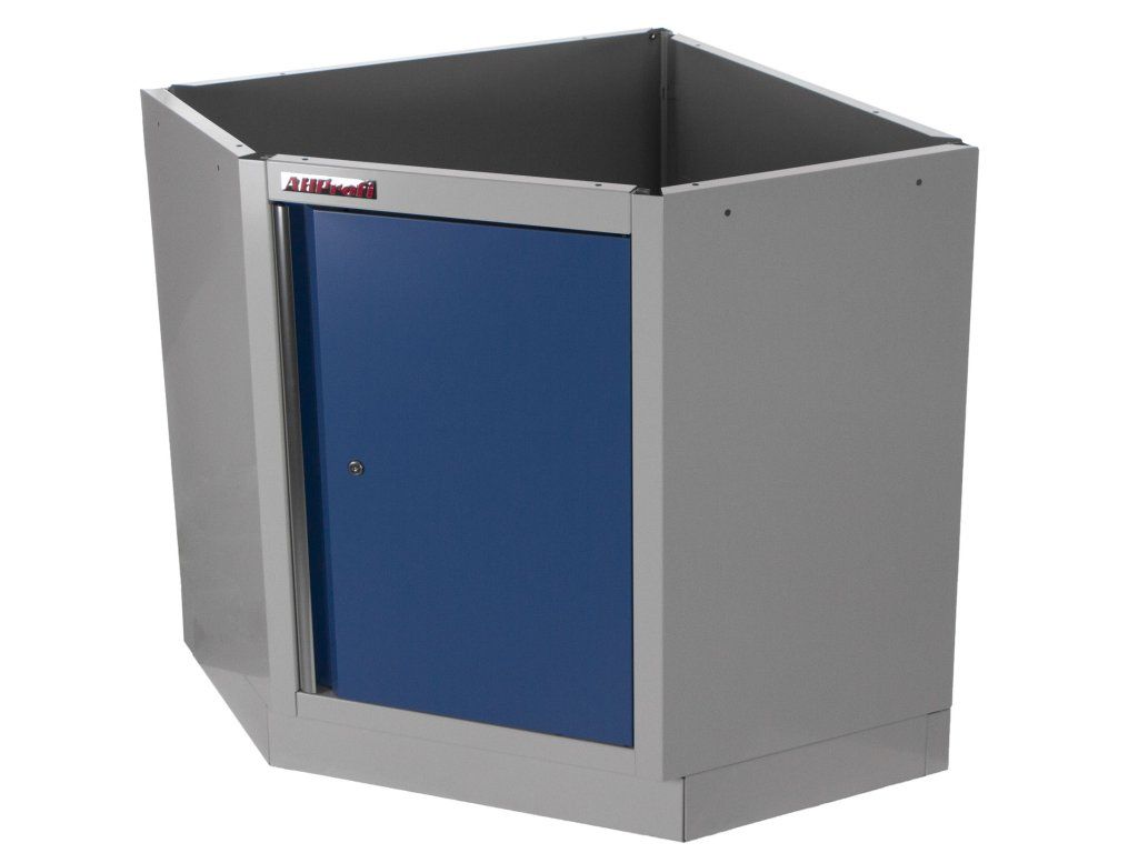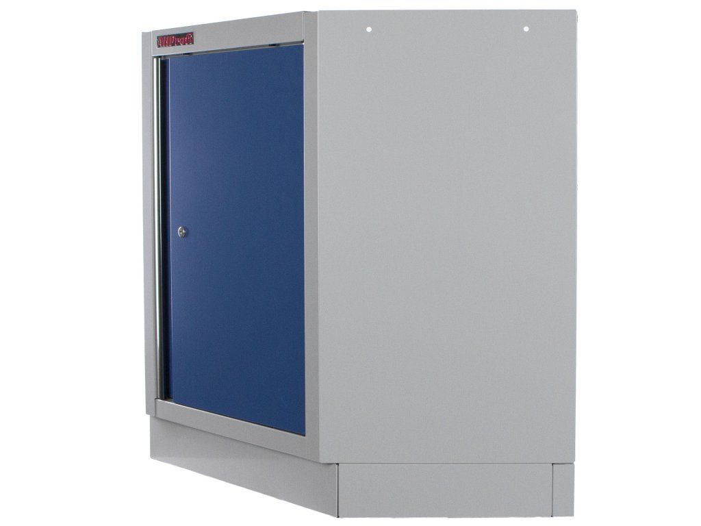 Celokovová rohová PROFI BLUE dílenská jednokřídlá skříňka se prodává i v rámci kvalitní PROFI rohové sestavy dílenského nábytku TGS1302 nebo menších sestavách. Skříňka je vhodná do profesionálních servisů, dílen, ale také do garáží pro uskladnění širokého sortimentu zboží i ručního nářadí, na které se pak nepráší a snáze se udrží přehledně uklizené na správném místě. Tato skříňka a potažmo celá rohová sestava Vám dává možnost maximálně využít prostor v garáži, domácí dílně i profi dílně a navíc parádně vypadá.