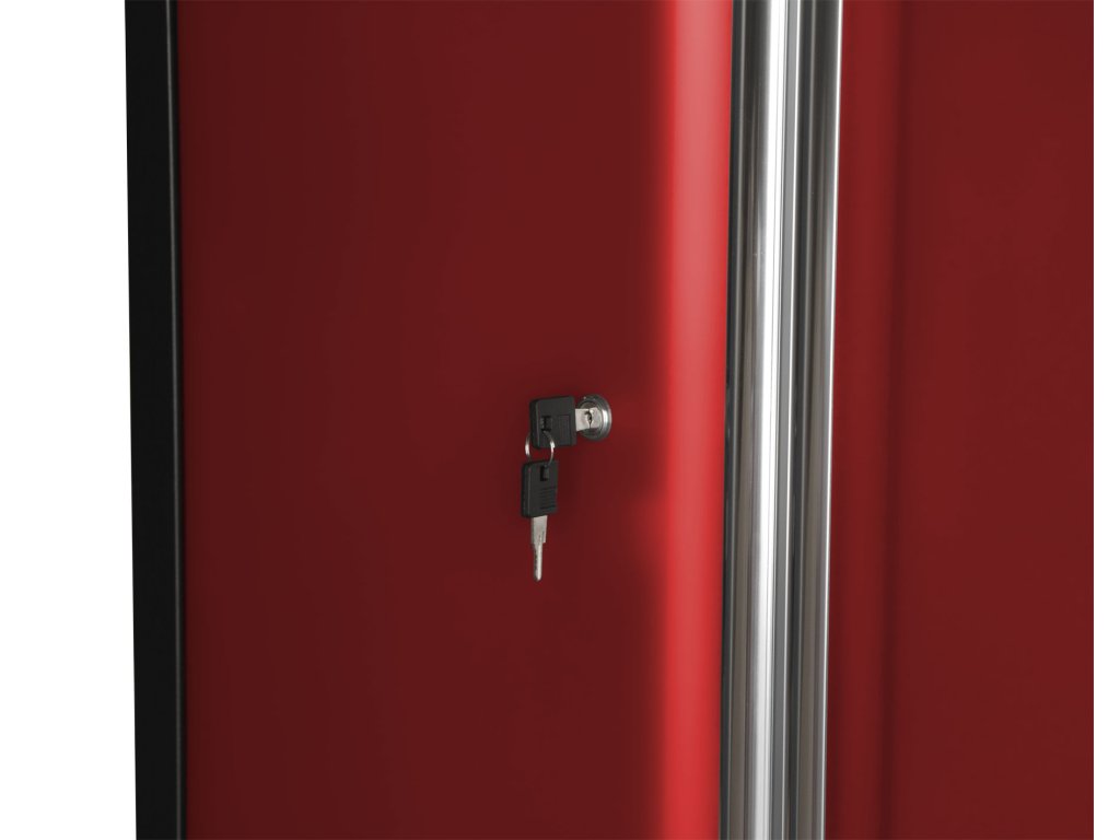 Celokovová široká dílenská skříň o rozměrech 915 x 458 x 2000 mm, váha 78 kg.