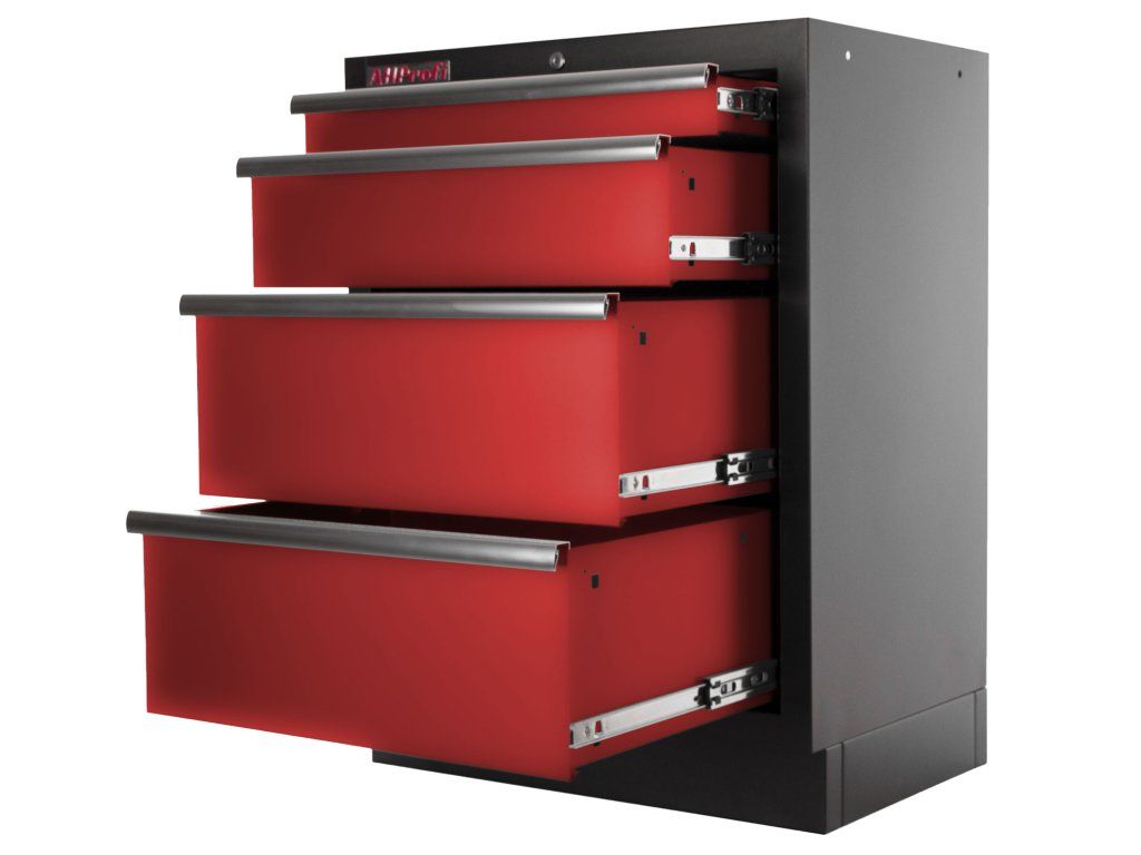Rozměr zásuvek: 1x úzká zásuvka 570 x 400 x 70 mm, 1x střední zásuvka 570 x 400 x 150 mm, 2x široká zásuvka 570 x 400 x 225 mm.