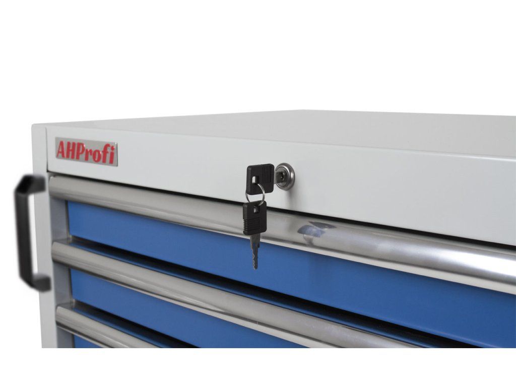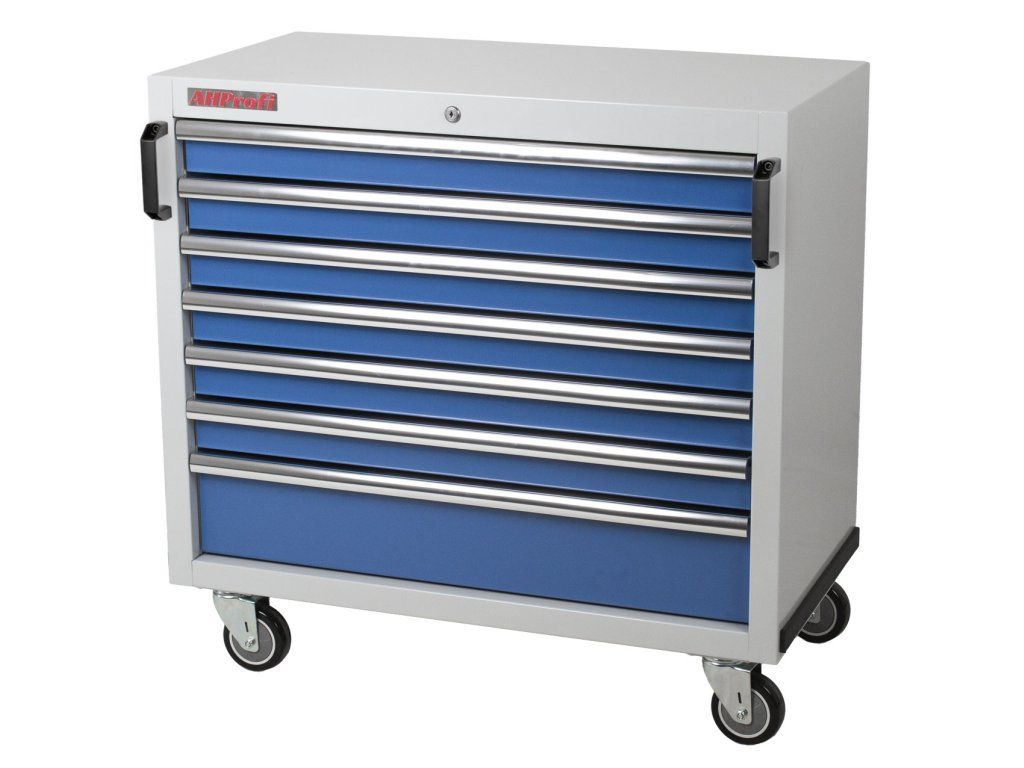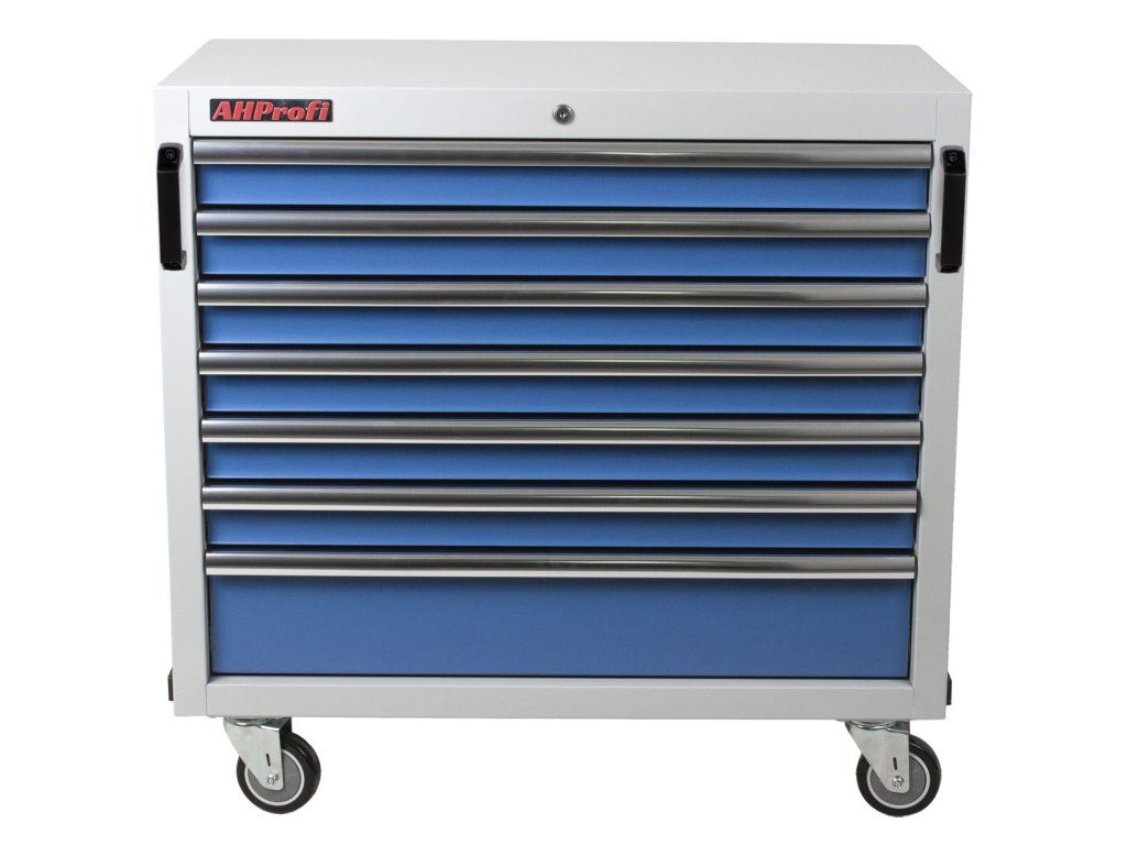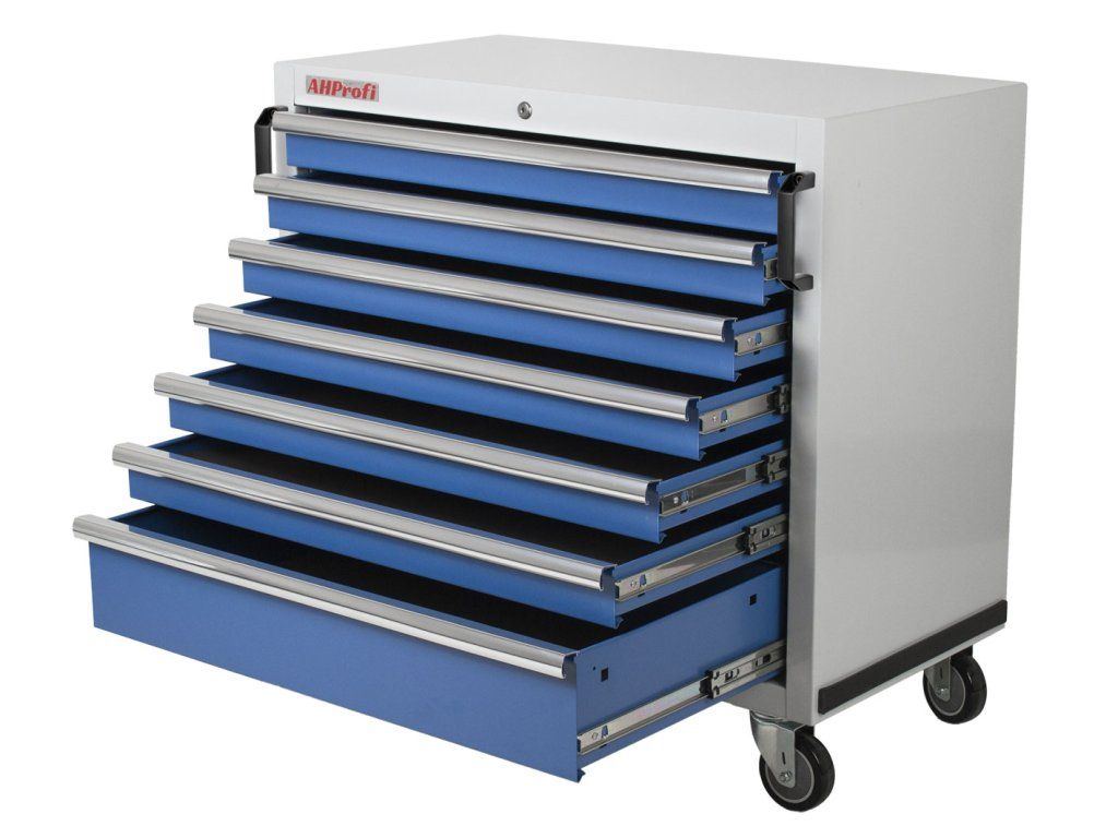 Celokovový dílenský vozík PROFI se 7 uzamykatelnými zásuvkami je ideální řešení pro maximální přehled, úložnou kapacitu a rychlou manipulaci v autoservisu, dílně i garáži.