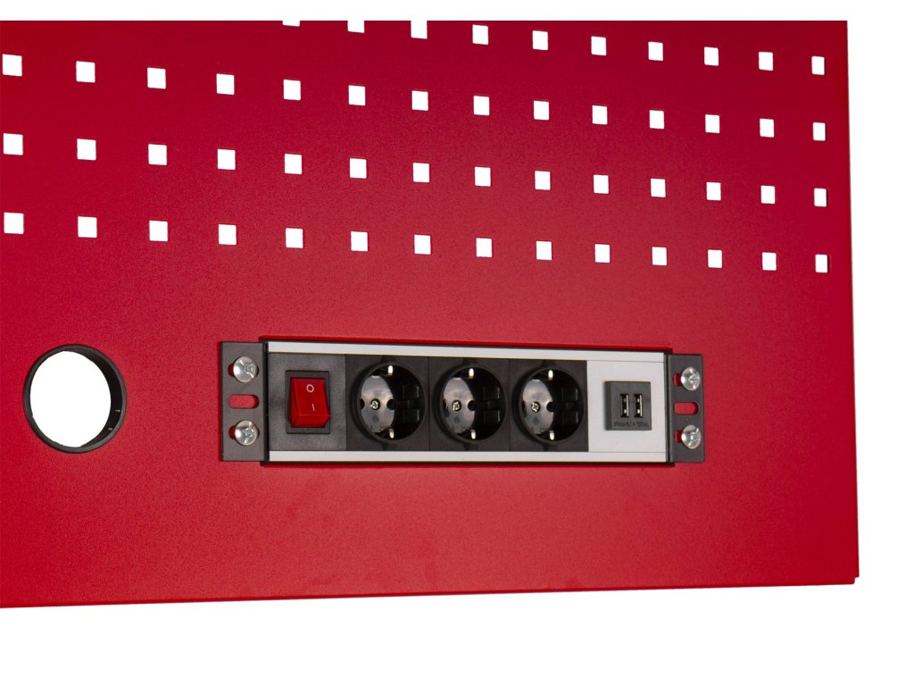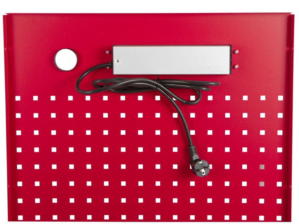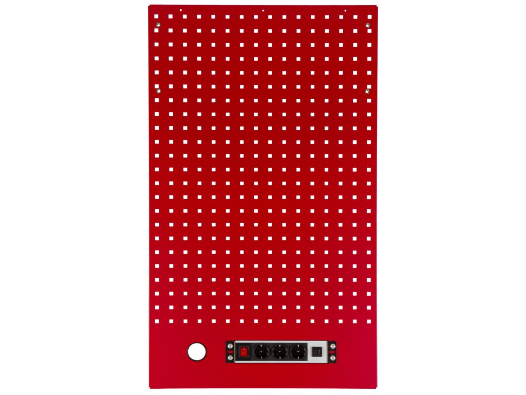 Děrovaná závěsná deska s el. zásuvkou 614,5x1052x24 mm PROFI RED - RWGB1324K