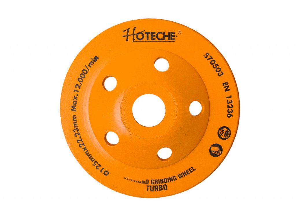 Pohárový brusný kotouč o ø 125 mm, ø otvoru 22,23 mm, řezný, max. 12 000 ot./min., max. rychlost 80m/s.