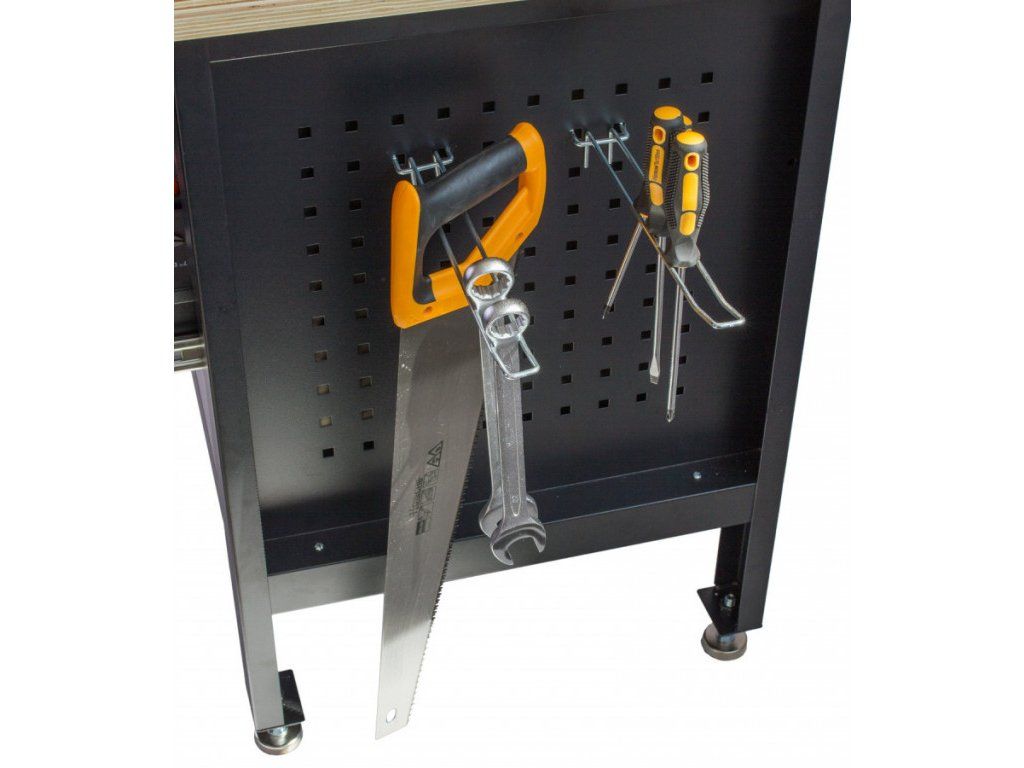 Na obou bocích je pracovní stůl vybaven děrovanou deskou. Díky tomu máte často používané nářadí stále po ruce a přehledně uspořádané.