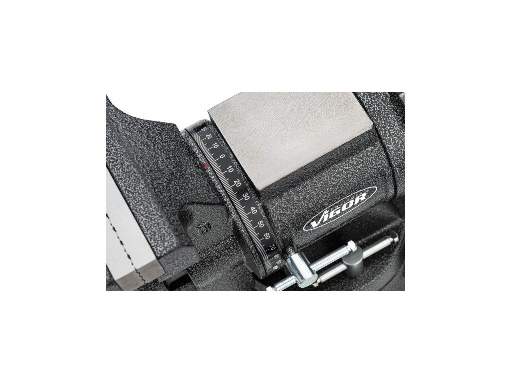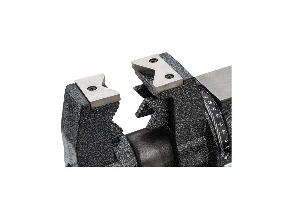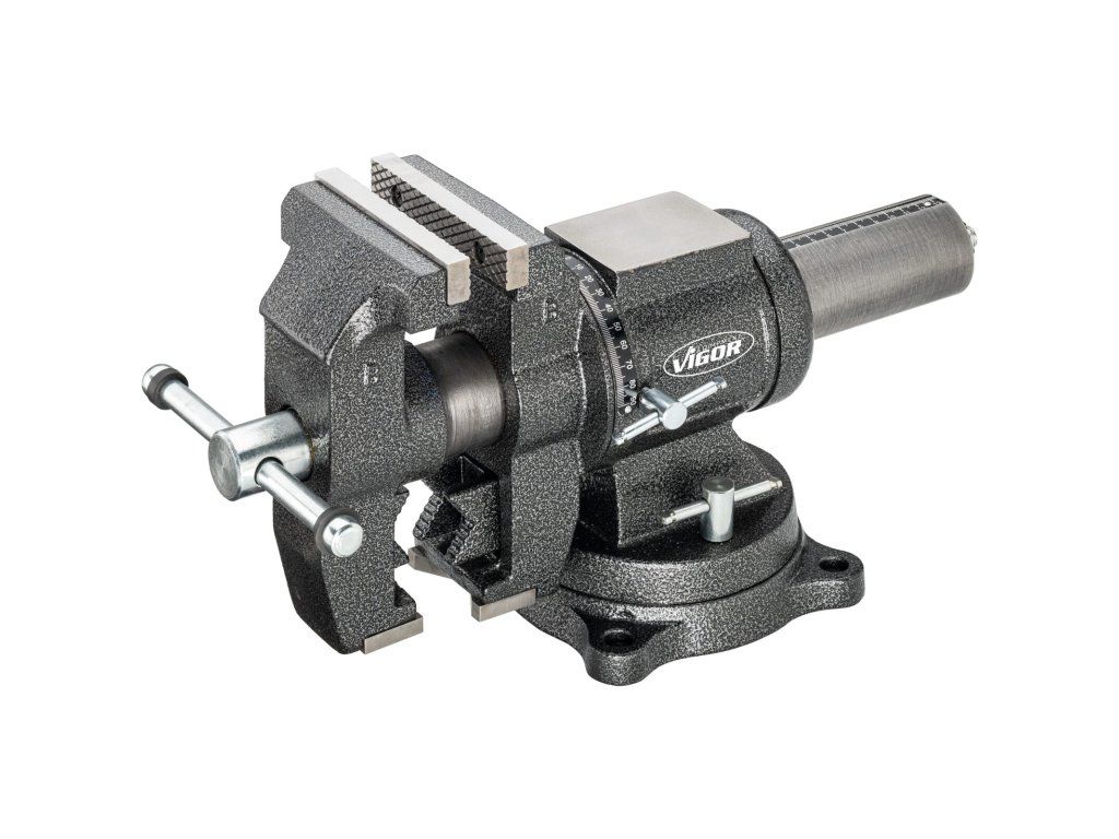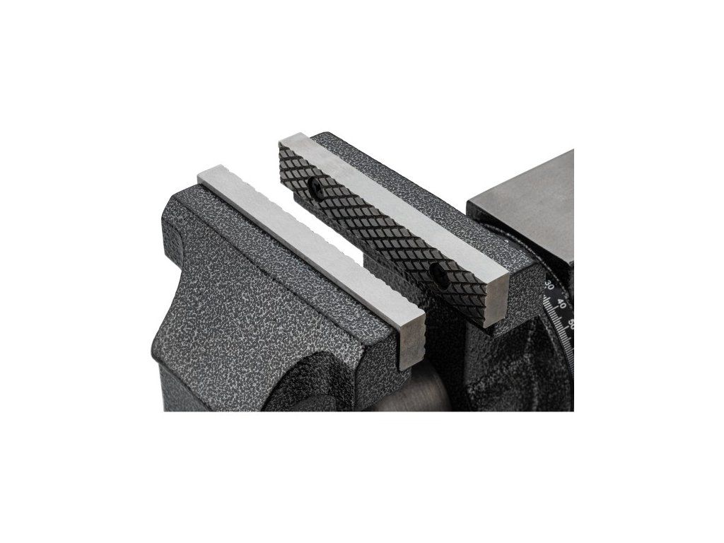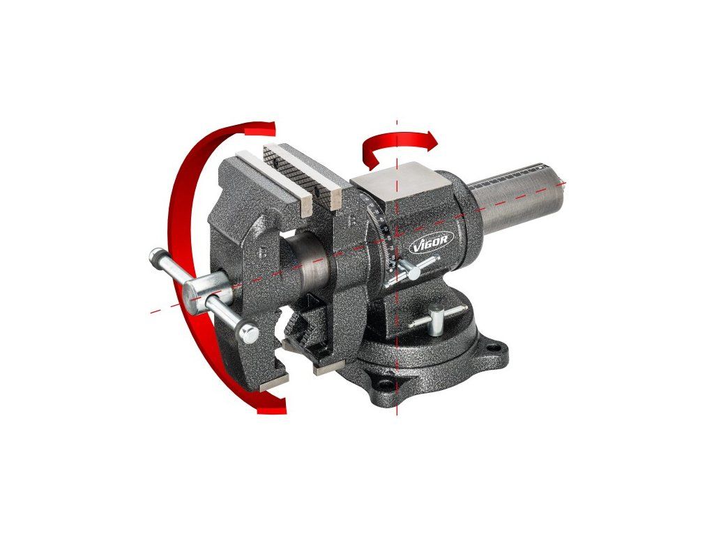Tento dílenský svěrák je ideální pro profesionální i hobby použití díky své flexibilitě a robustní konstrukci. Je vybaven otočným talířem a umožňuje tak snadnou práci s plochými i kulatými díly. Díky možnosti otáčení ve vodorovné i svislé ose je práce rychlá, efektivní a přizpůsobitelná z různých úhlů.