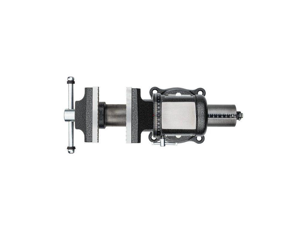 Otočný dílenský svěrák 150 mm, kleštinové sklíčidlo 125 mm, max. šířka rozpětí 130 mm. Váha 19 kg, rychlé nastavení pracovní polohy.