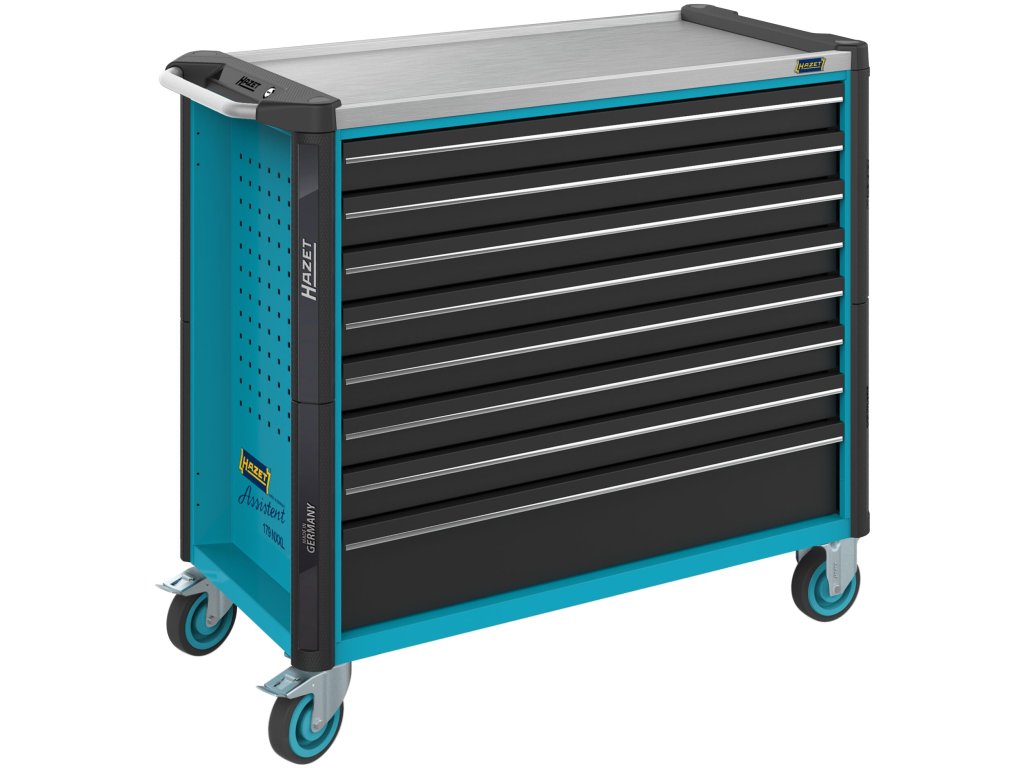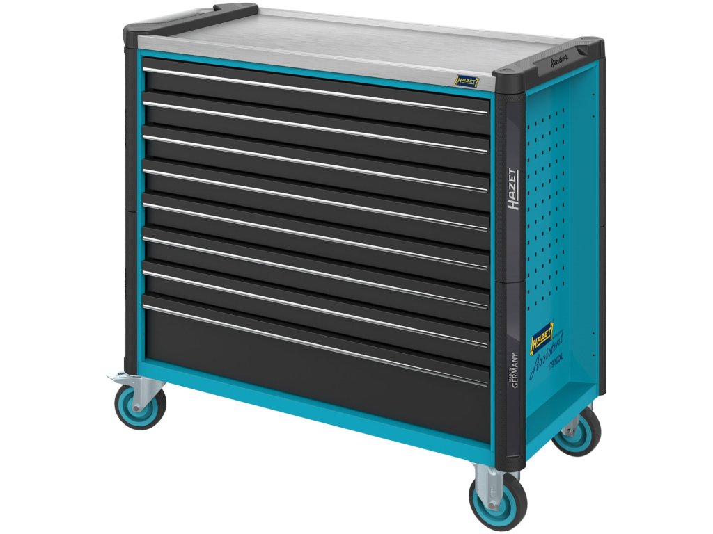 Vysoce kvalitní dílenský vozík od německého výrobce Hazet. Díky svým větším rozměrům nabízí větší skladovací prostor a širší pracovní desku z nerezové oceli, která je zároveň zcela utěsněná proti vniknutí různých kapalin do vnitřku vozíku.