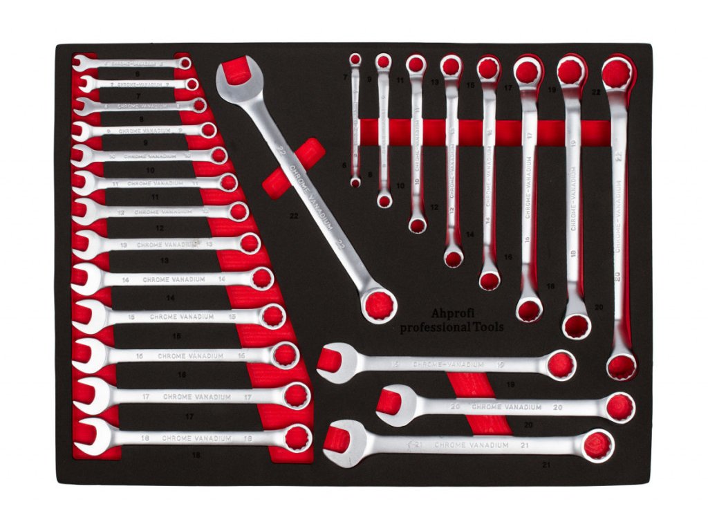 | 17 ks | Očkoploché klíče: 6, 7, 8, 9, 10, 11, 12, 13, 14, 15, 16, 17, 18, 19, 20, 21, 22 mm |