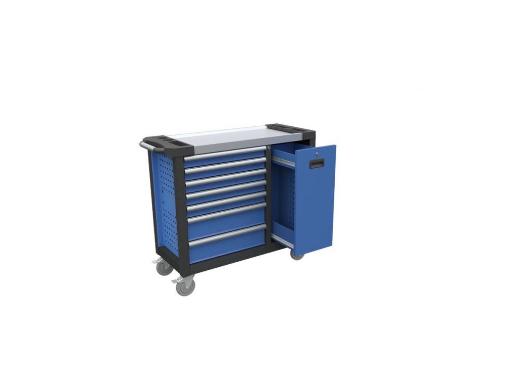 - Vybavení: 5 zásuvek 530 x 60 x 400 mm, 2 zásuvky 530 x 135 x 400 mm, 1 uzamykatelná skříňka