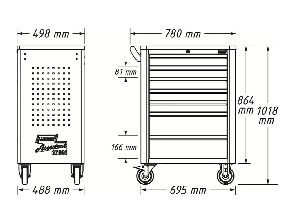 Rozměry vozíku: 780 × 498 × 1018 mm