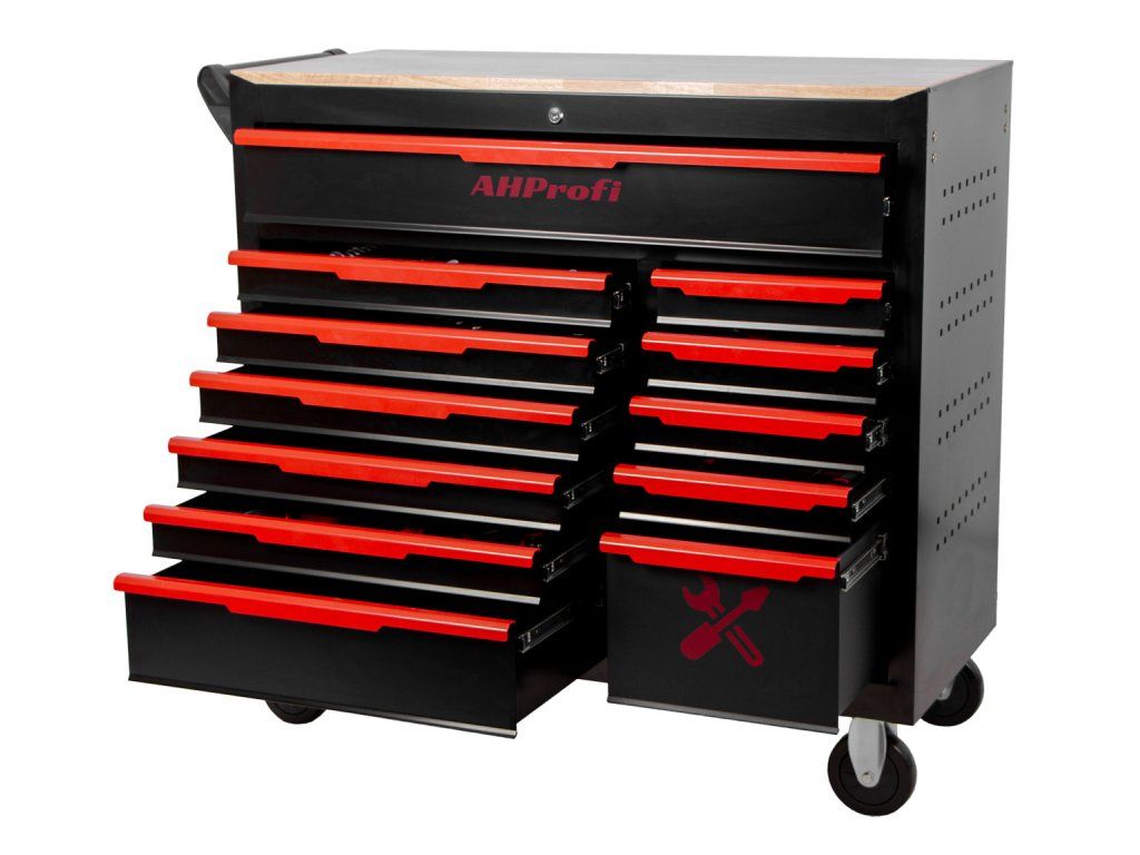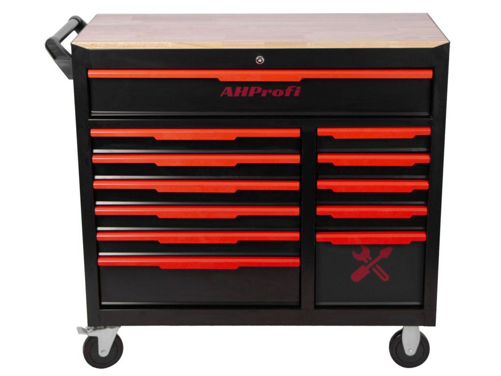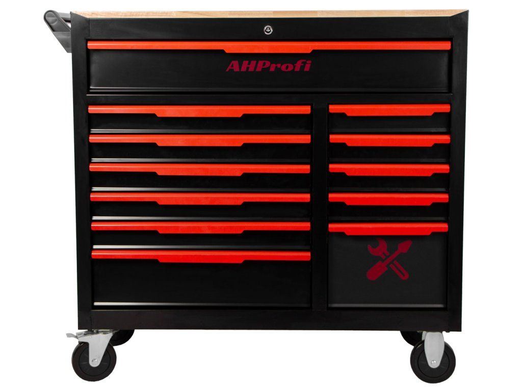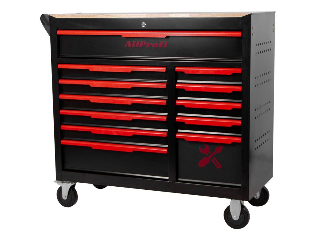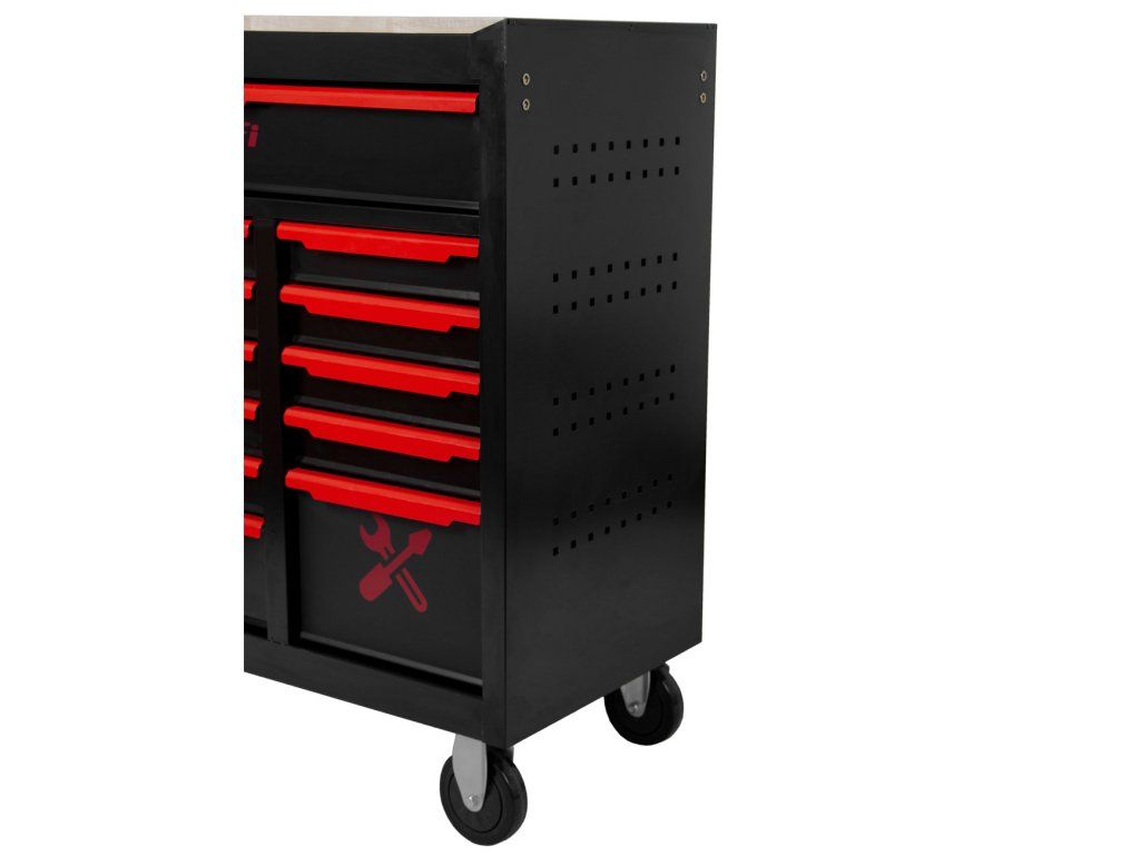 Široká konstrukce vozíku s množstvím úložného prostoru s celkem 12-ti zásuvkami umožnuje dokonalý přehled nad nářadím a díky kolečkům je také skvěle mobilní.