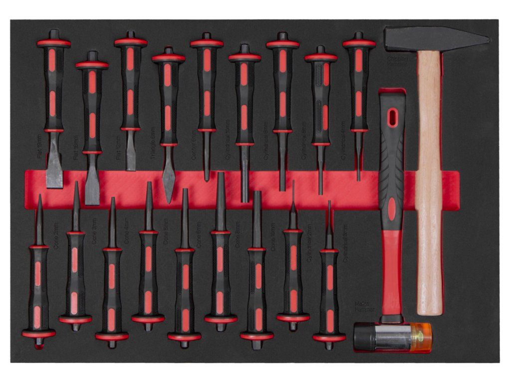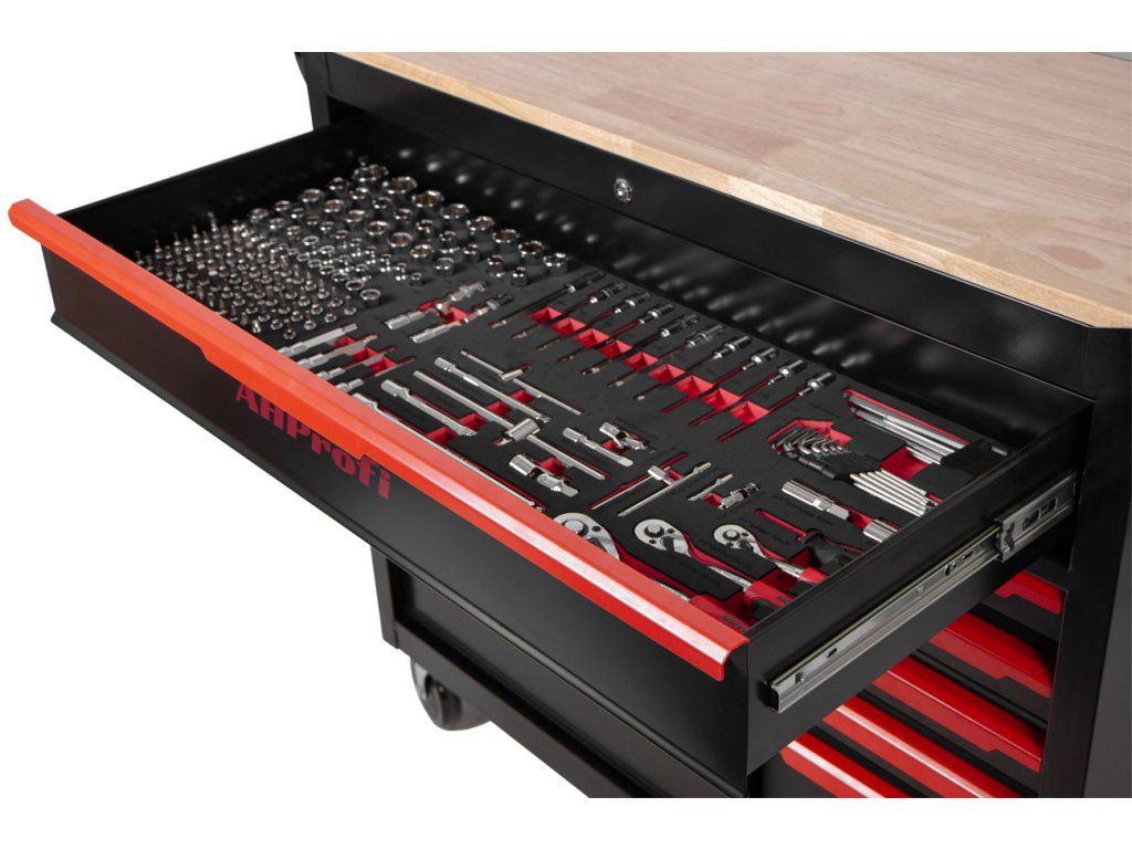 Dílenský vozík Magnus XXL obsahuje 11 pěnových výplní s velkým množstvím nářadí.