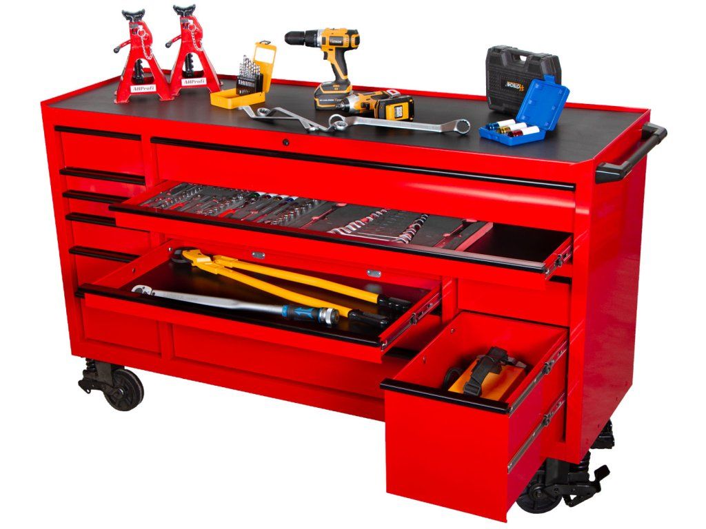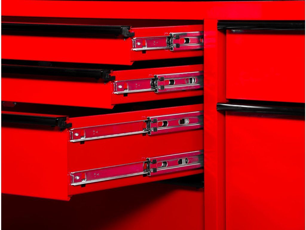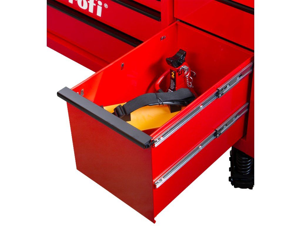 Celkem 14 zásuvek (včetně 2 extra širokých) usnadní rozdělení nářadí i vybavení tak, aby bylo rychle dostupné a bez chaosu.