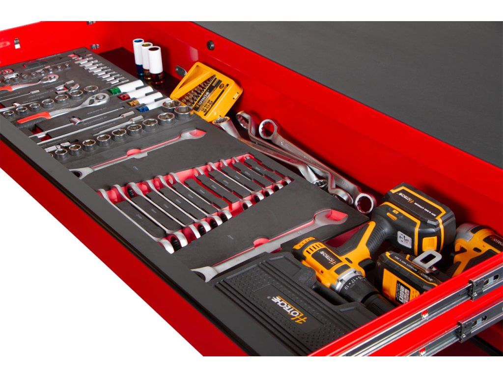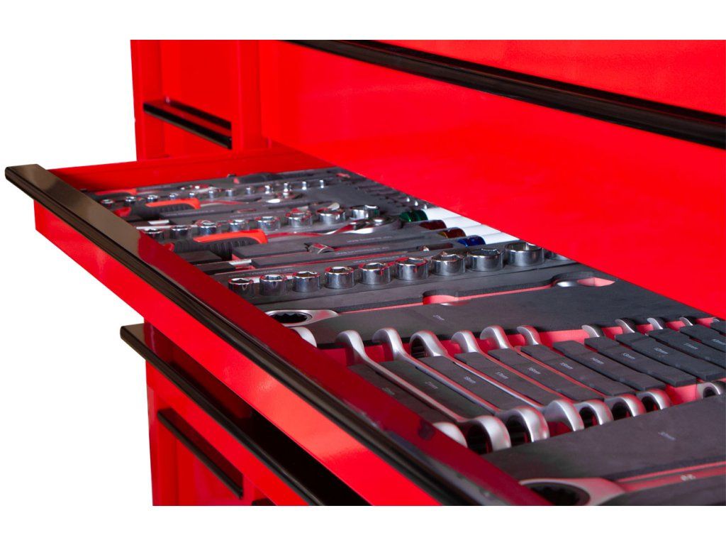 Pro maximální přehled je vozík vhodné doplnit o pěnové výplně, organizéry do zásuvek nebo další dílenské příslušenství podle způsobu použití.