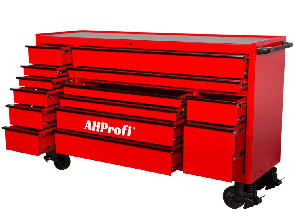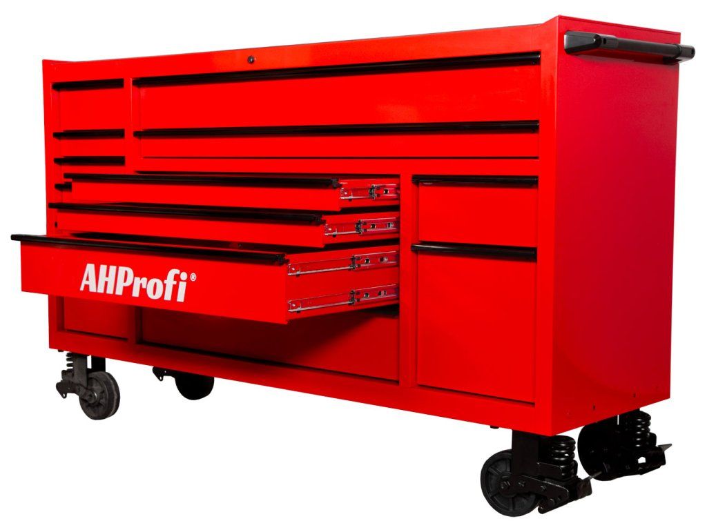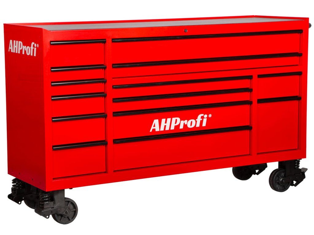 Dílenský vozík MAXIMUS je největší vozík v nabídce AHProfi. Je stavěný pro provozy, kde potřebujete mít opravdu hodně nářadí přehledně po ruce. Díky rozměrům 1815 × 559 × 1114 mm se hodí jako centrální úložiště do dílny i servisu.