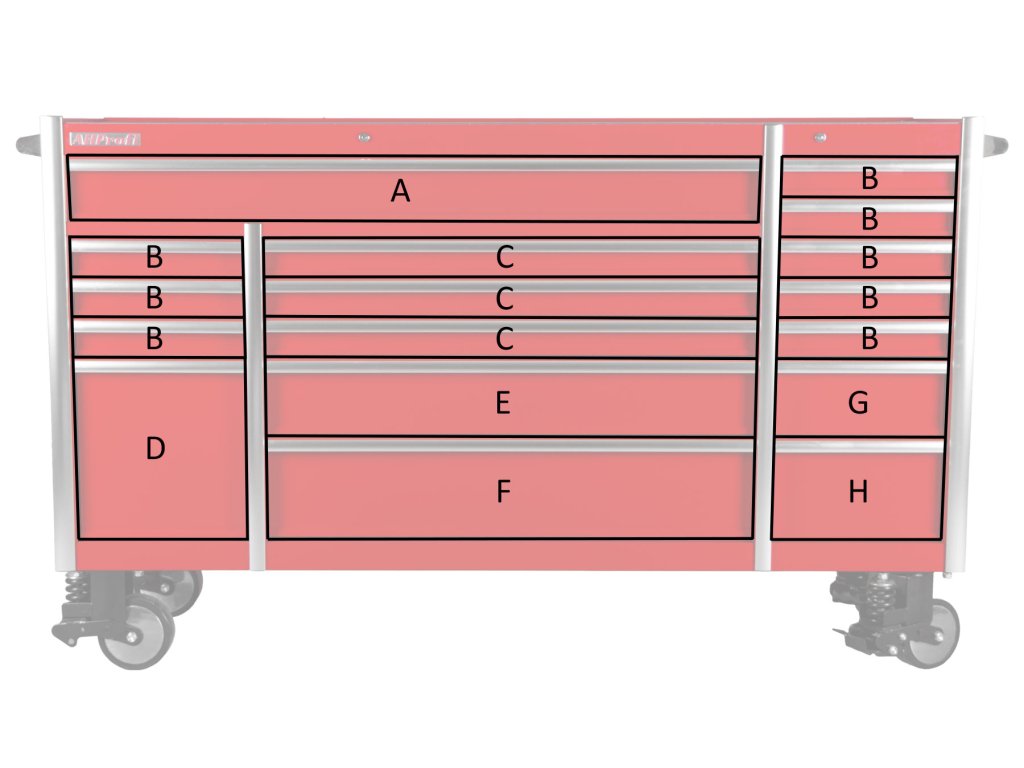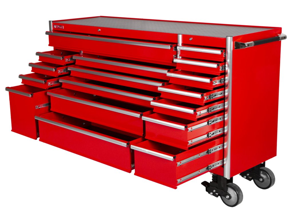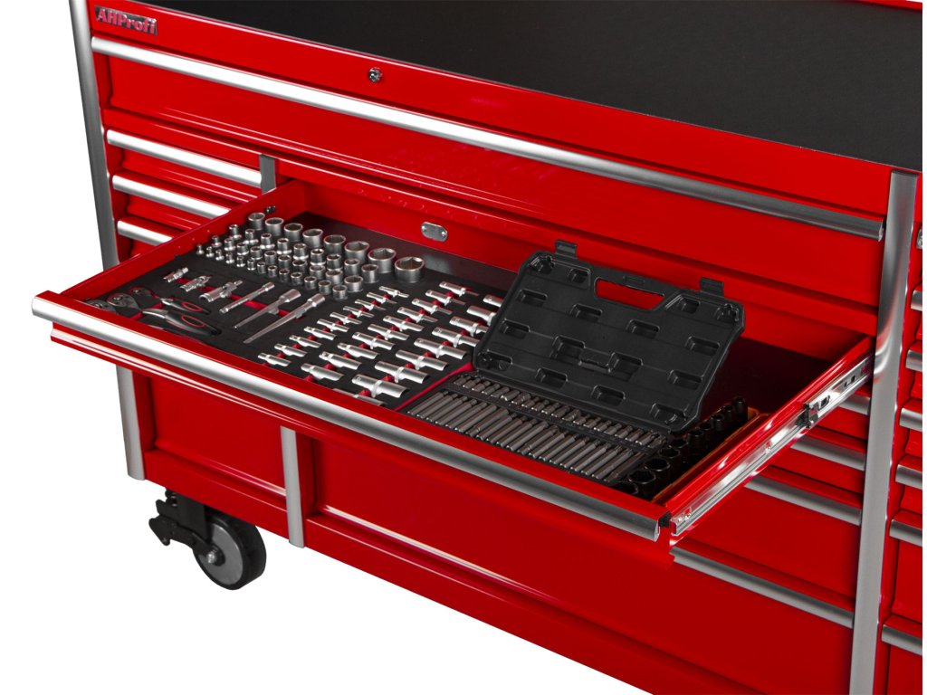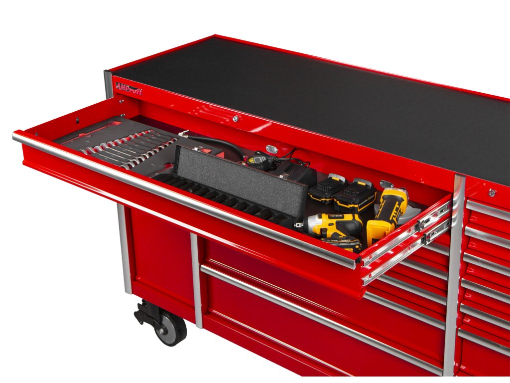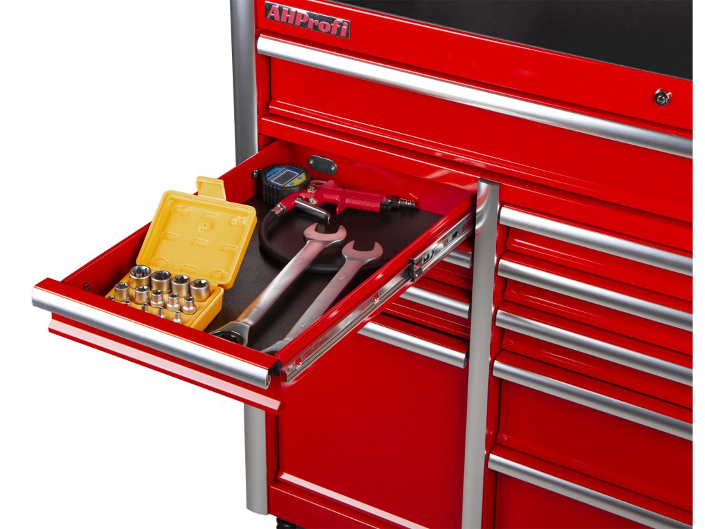 Rozměry šuplíků jsou uzpůsobeny pro uložení jak malého křehkého nářadí nebo elektroniky, tak i pro větší a objemné nářadí.